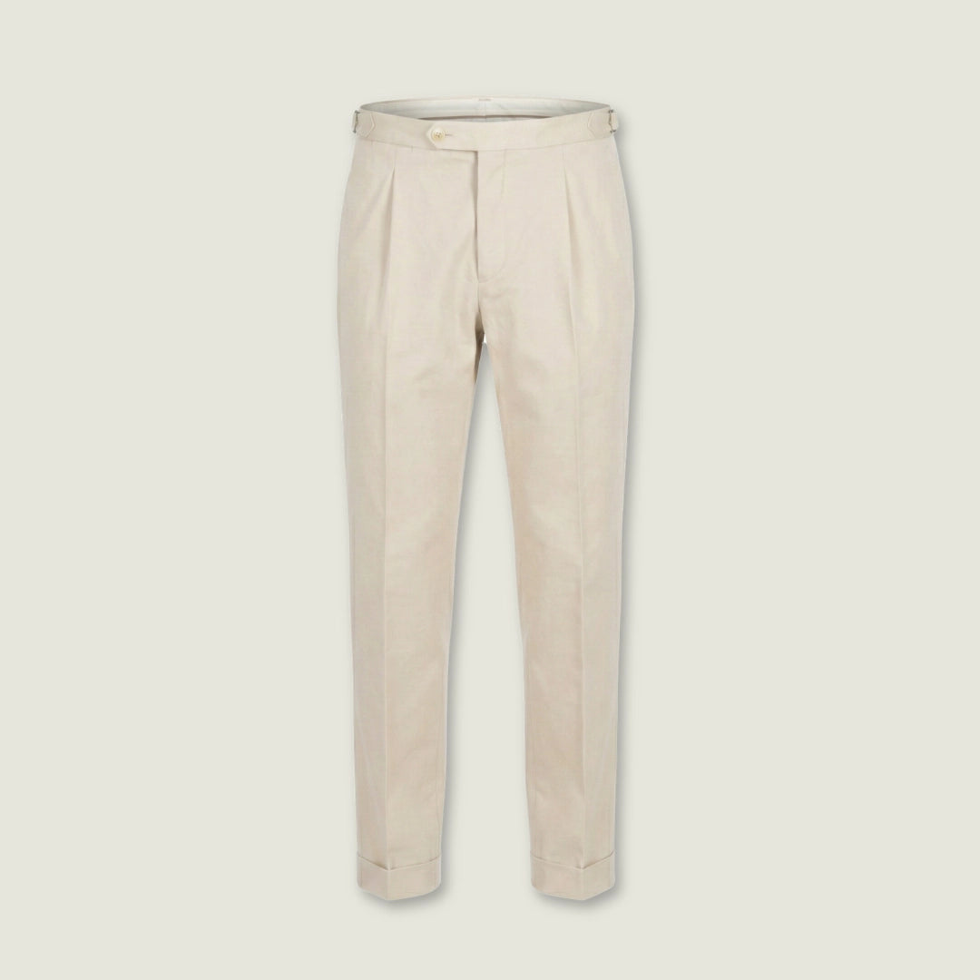 Pantalone Sartoriale Contemporary in 100% Caldo Cotone con Una Pince – Beige Plain – Made in Italy