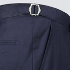Il colore blu in riviera Holland & Sherry, rende questo pantalone molto facile da abbinare, unito alla costruzione retrò con le due pinces alla francese e le fibbiette laterali, potrà essere la vostra base per un outfit ricercato.