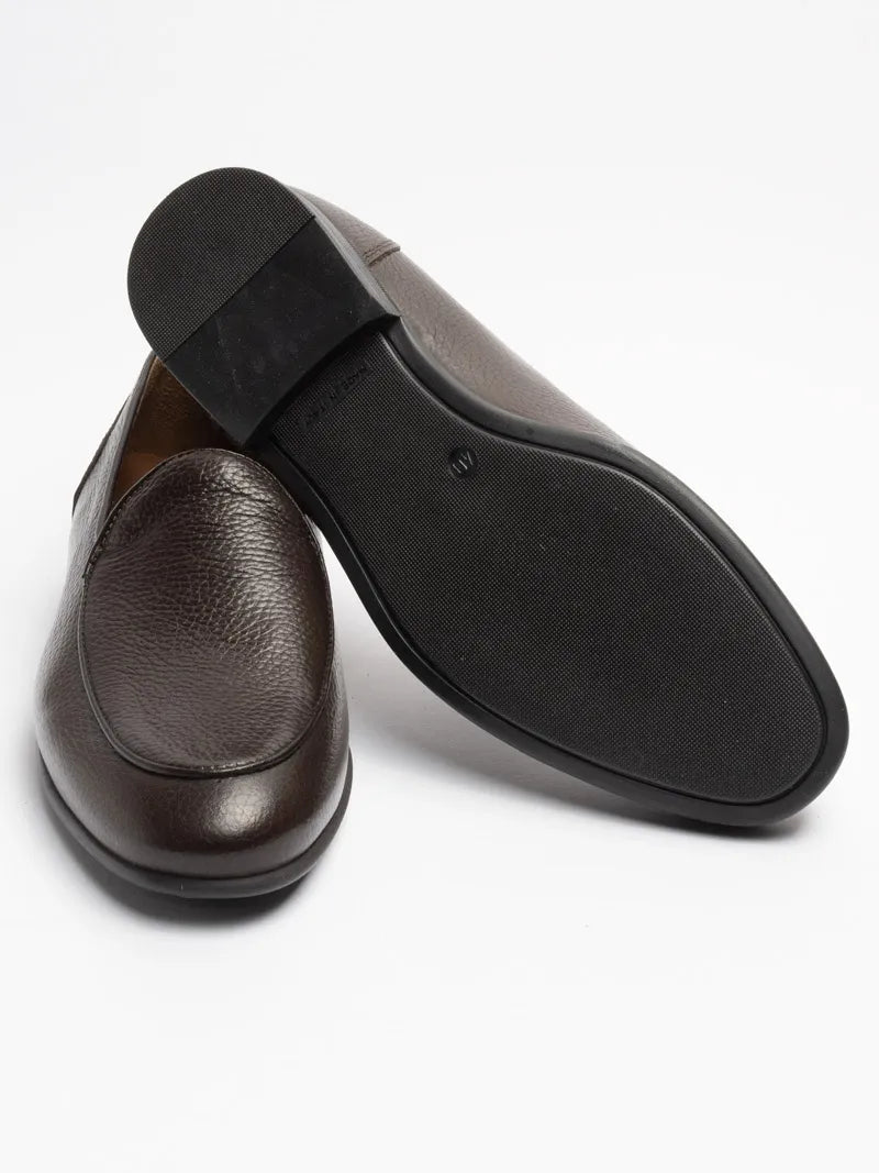 Scarpa Loafer in Pelle di Vitello Bottolata Color Moro