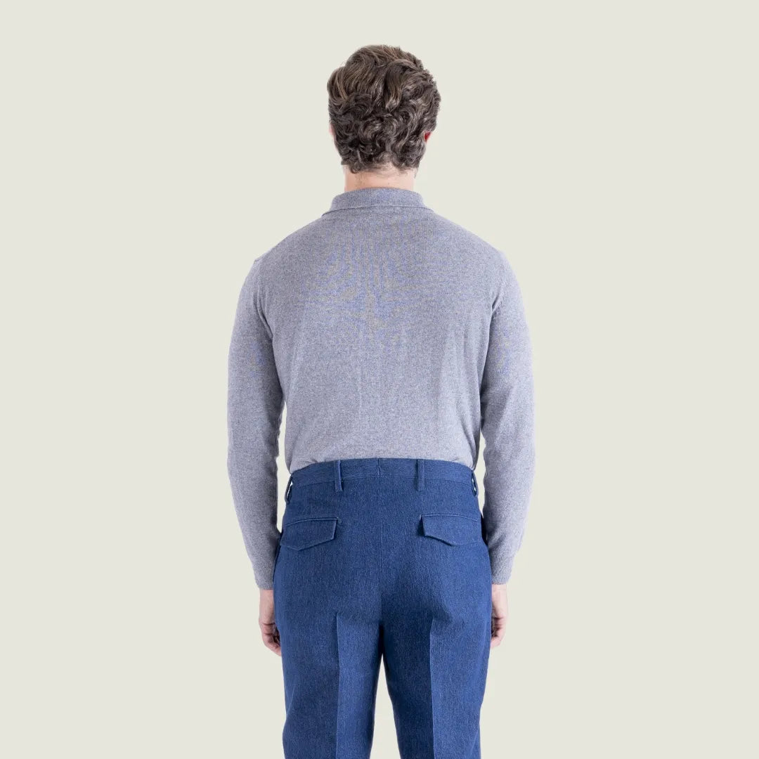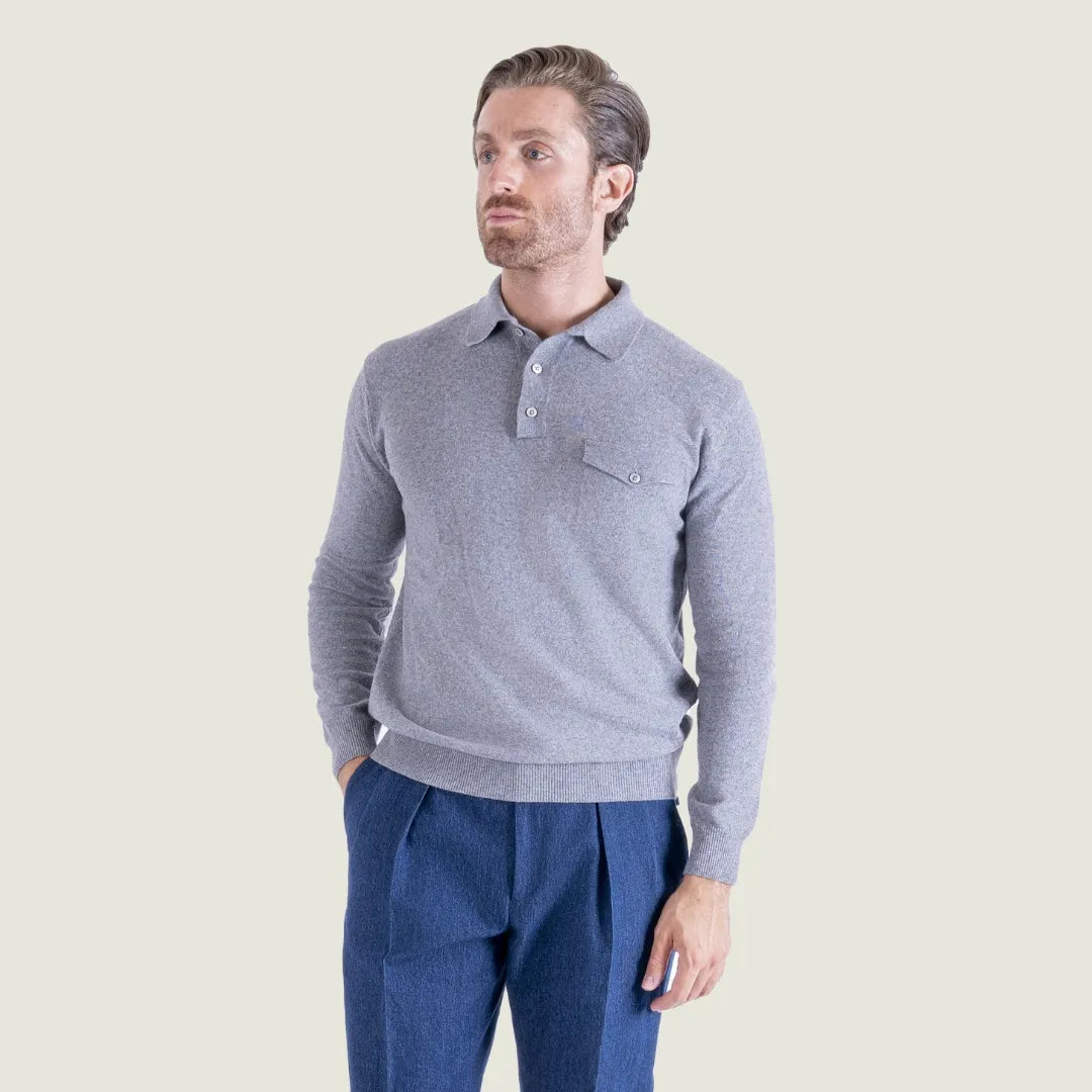 Polo Manica Lunga con Taschino in Lana Merinos Finezza 14 – Grigio – Made in Italy