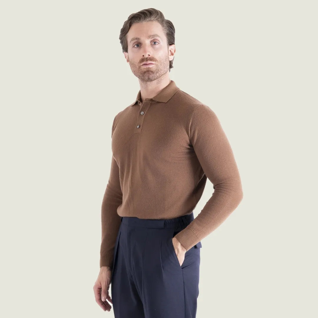 Polo Manica Lunga in Lana Merinos Finezza 14 – Marrone – Made in Italy