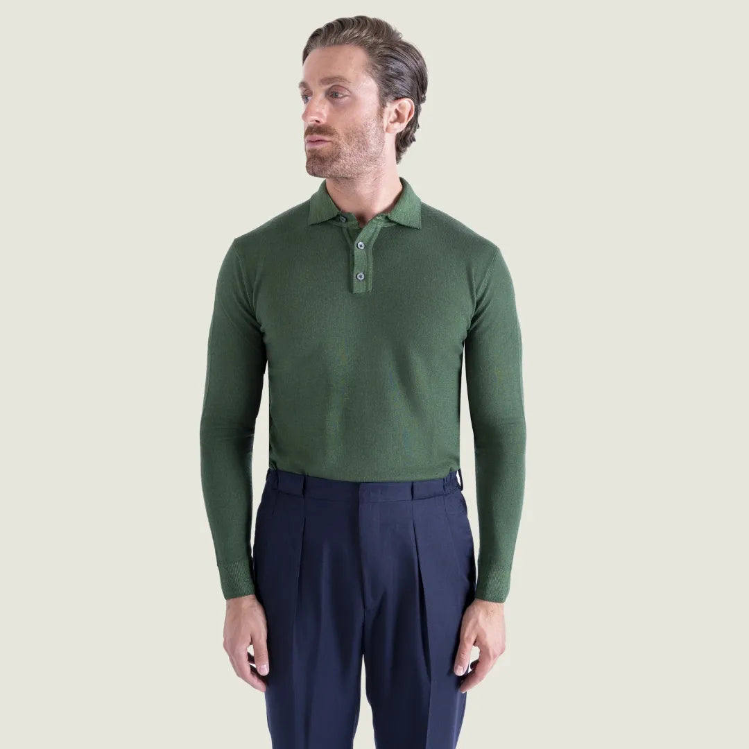 Polo Manica Lunga in Lana Merinos Finezza 14 – Verde – Made in Italy