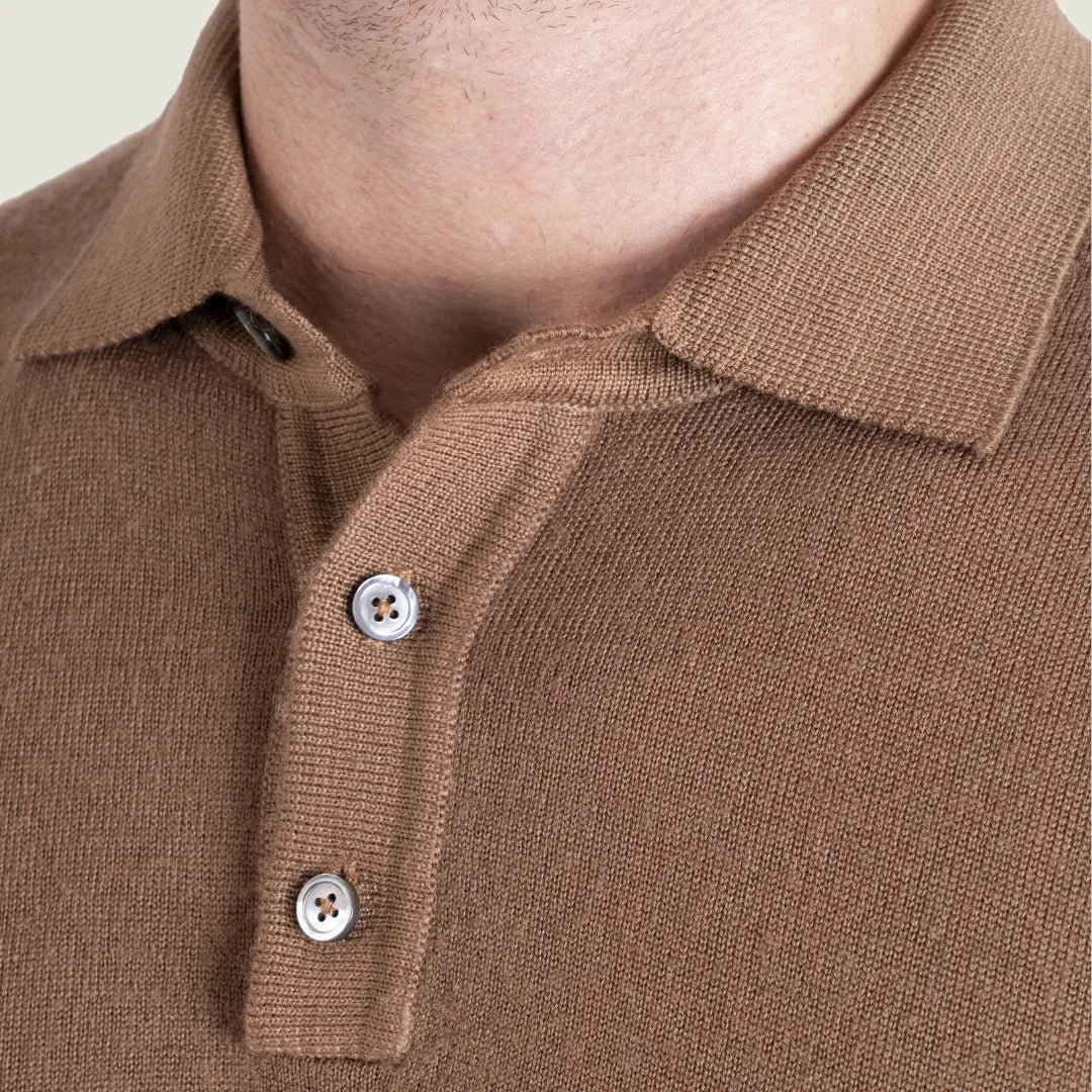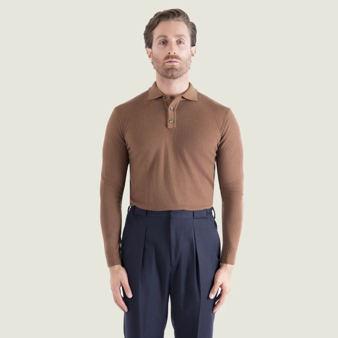 Polo Manica Lunga in Lana Merinos Finezza 14 – Marrone – Made in Italy