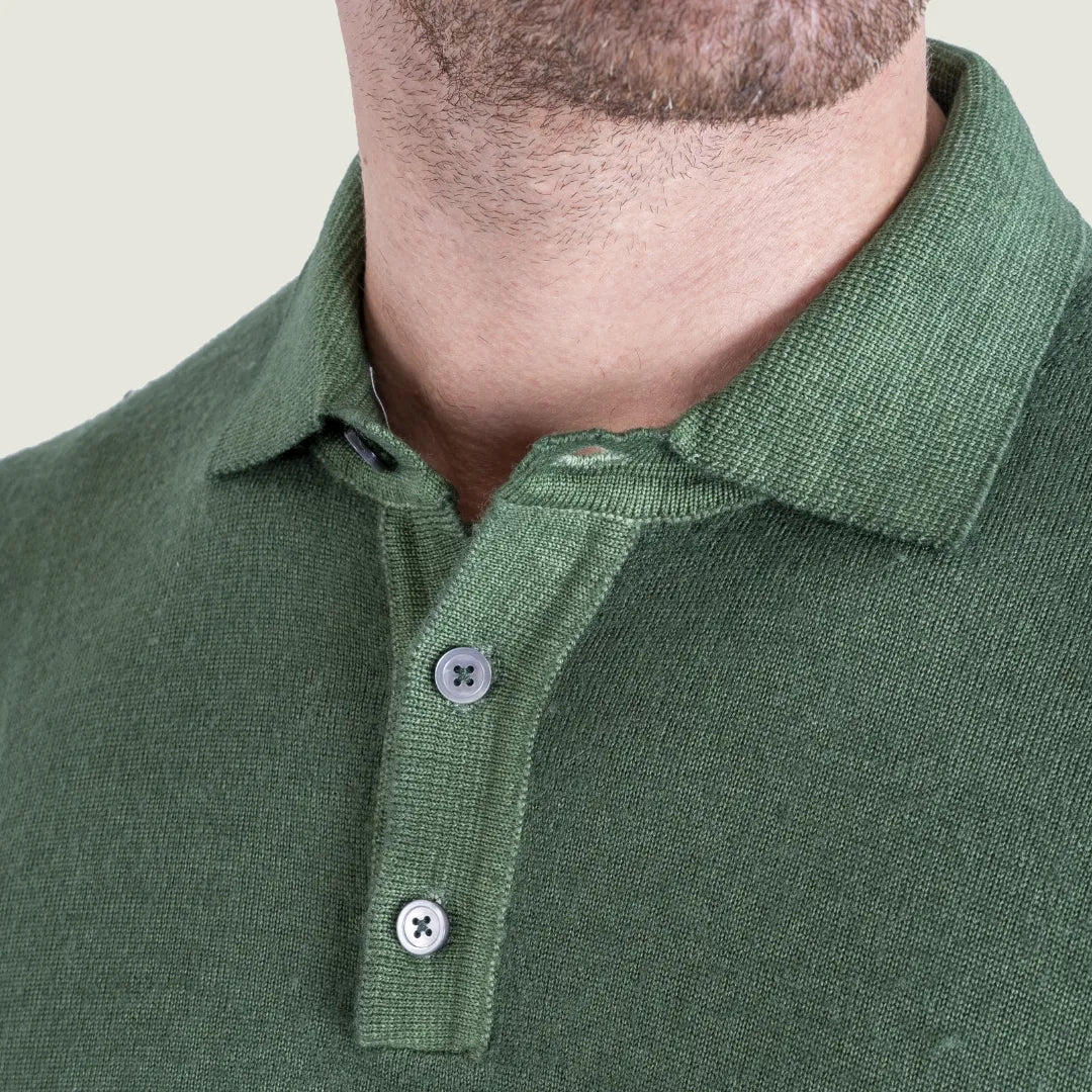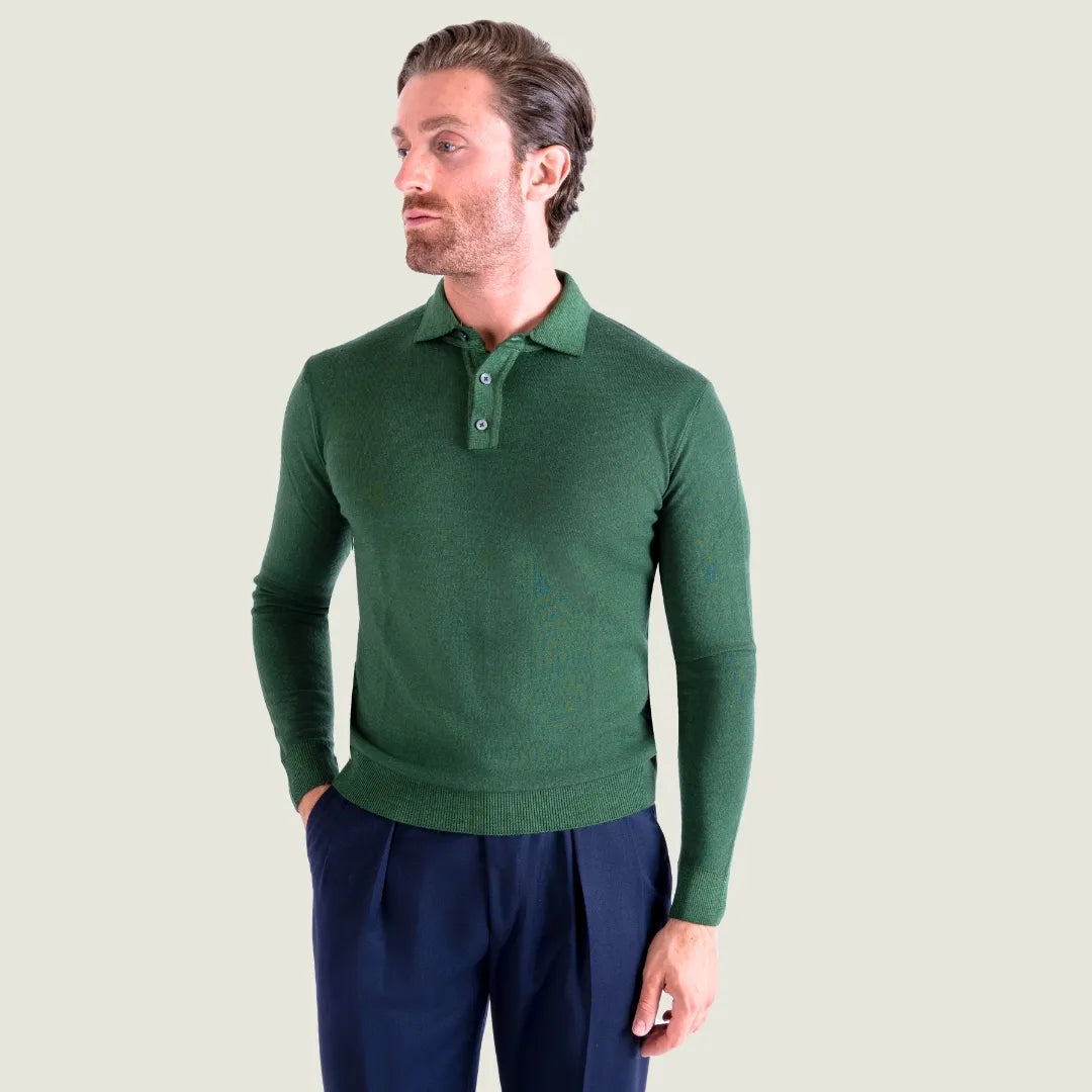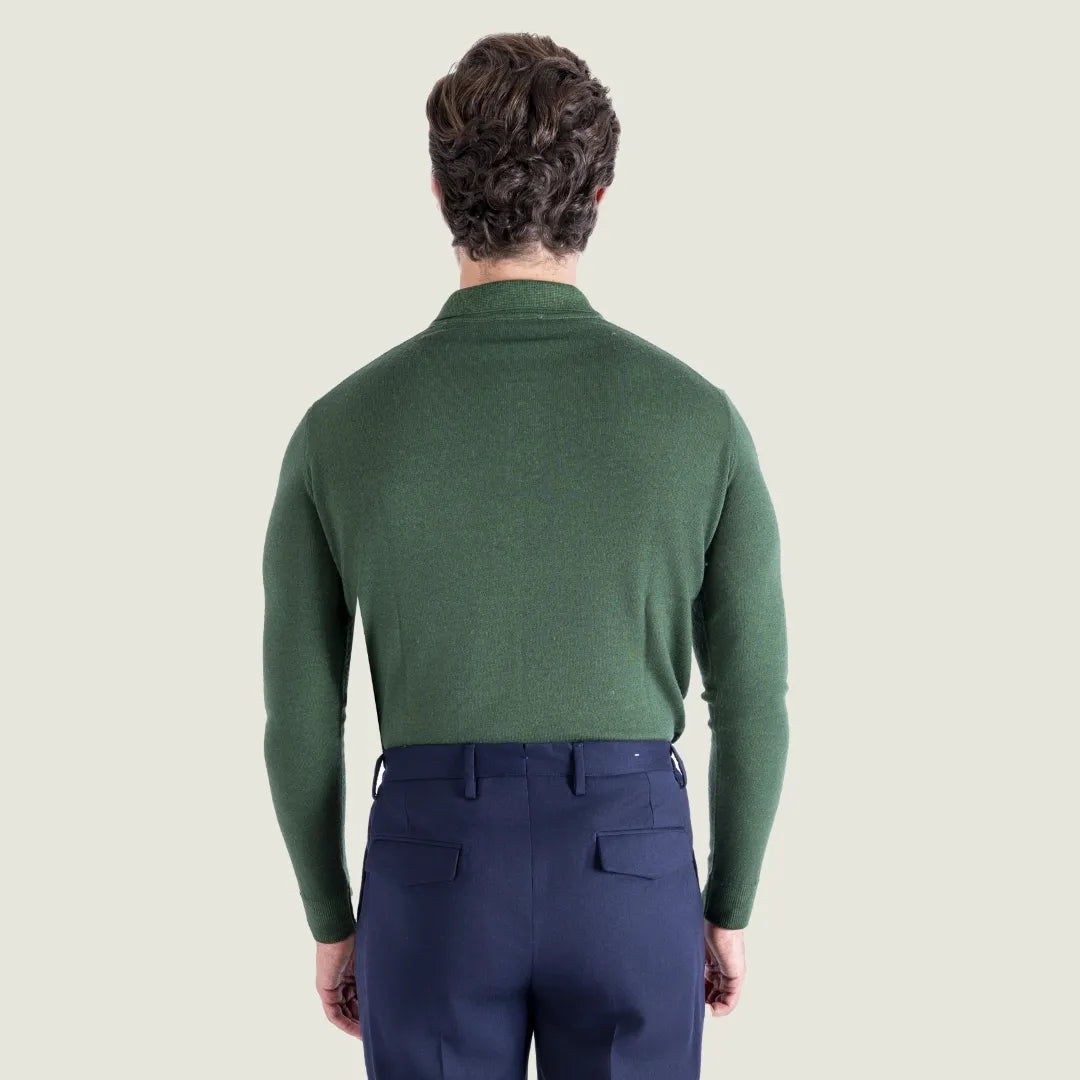 Polo Manica Lunga in Lana Merinos Finezza 14 – Verde – Made in Italy