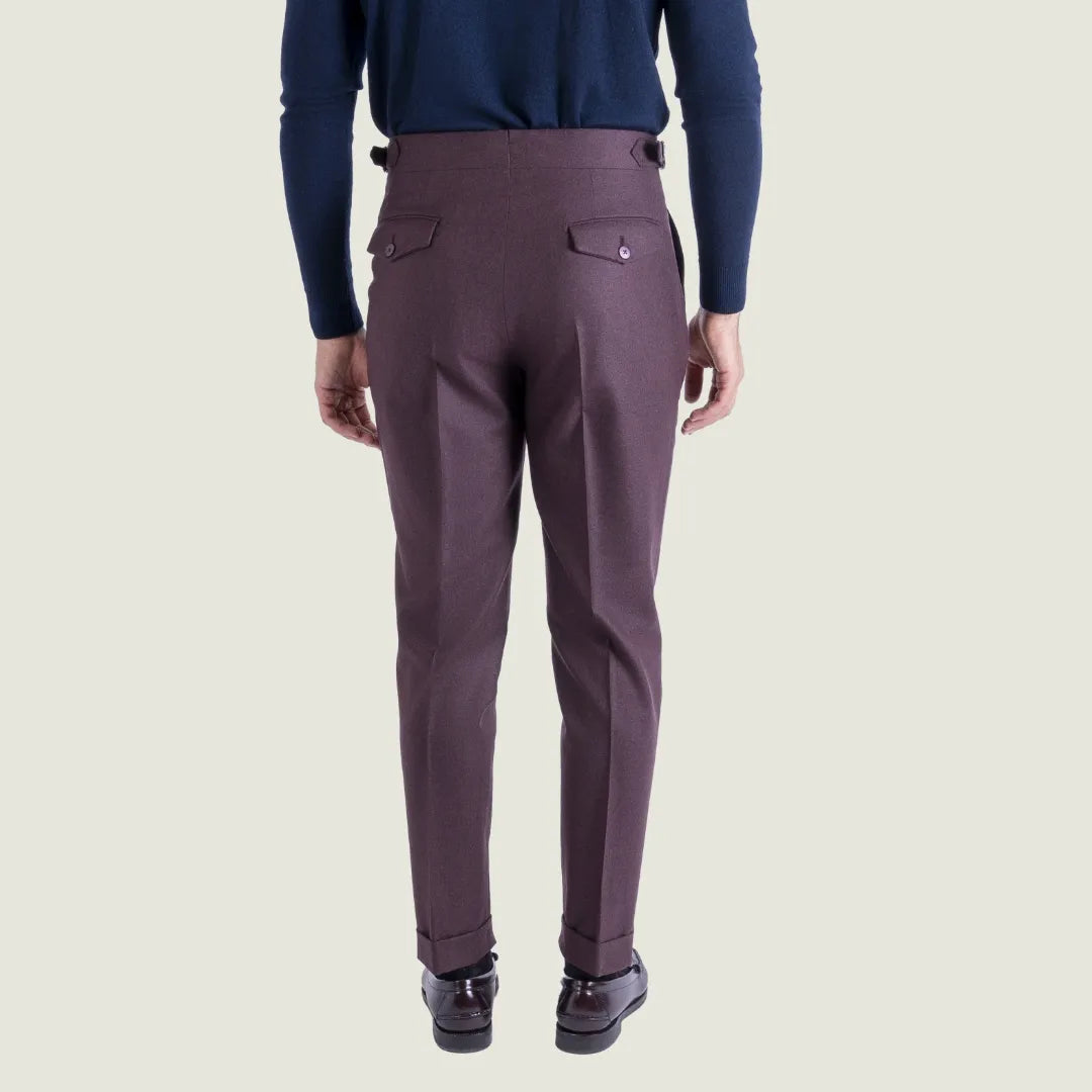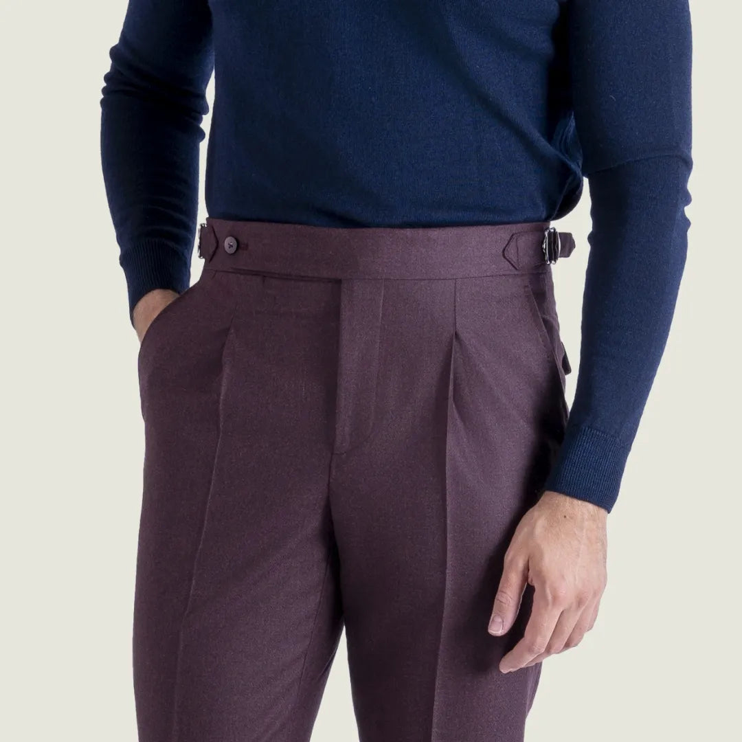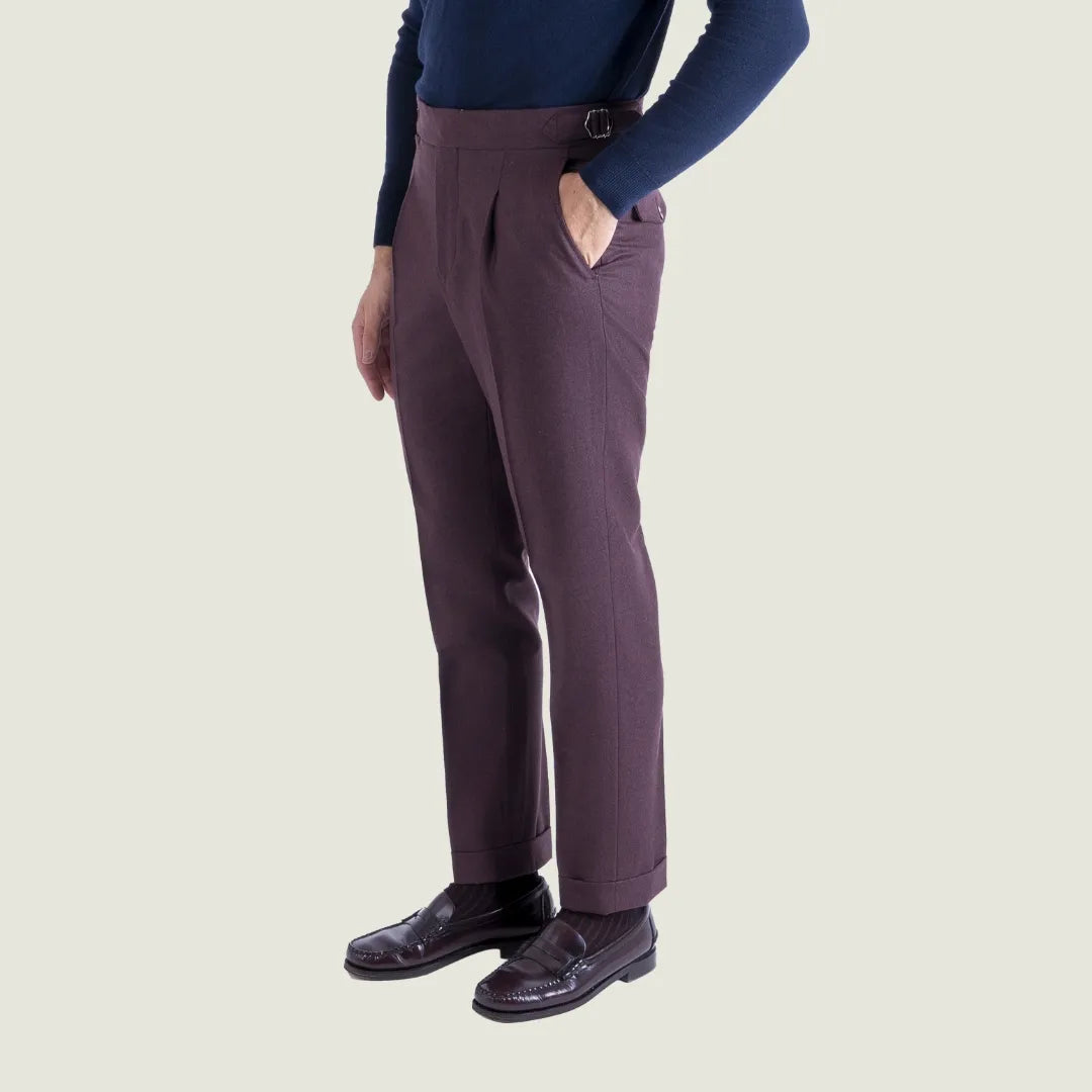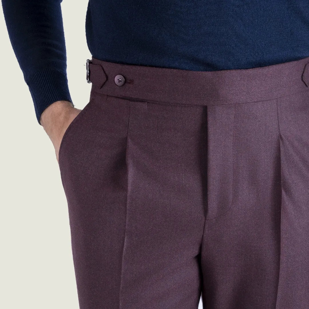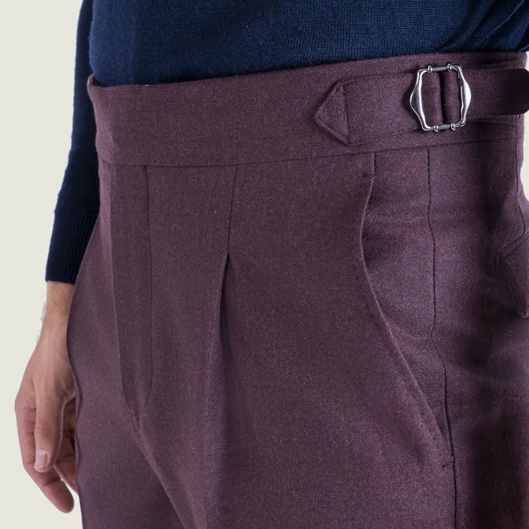 Pantalone Sartoriale Oyster in Flanella Lana Cashmere Bordeaux con Una Pince - Made in Italy