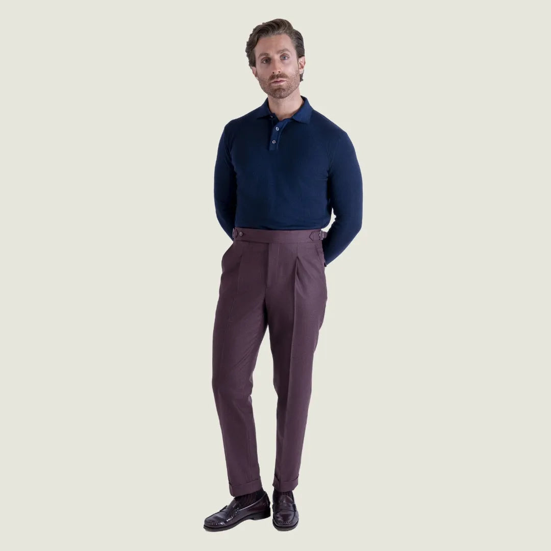 Un pantalone sartoriale dal carattere deciso e raffinato, parte della linea Iconic, pensato per accompagnarti con stile nella stagione invernale. Il Pantalone Sartoriale Oyster in flanella lana cashmere bordeaux incarna la perfetta fusione tra tradizione sartoriale napoletana e comfort contemporaneo.