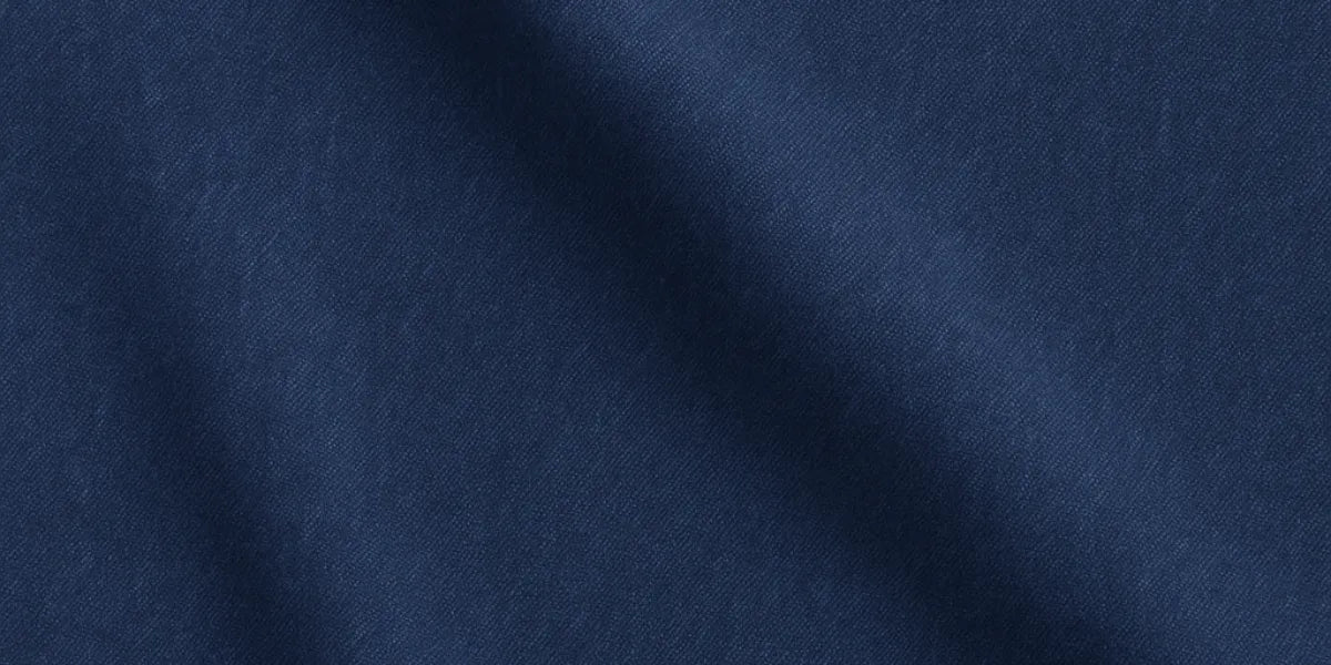Questo denim tecnico è composto per il 70% da cotone, per il 29% da poliestere e per l’1% da elastane. Il risultato è un tessuto morbido, traspirante e lievemente stretch, pensato per seguire i movimenti del corpo senza costrizioni. La superficie leggermente fiammata e la tonalità blu intensa richiamano la tradizione casual italiana, mentre la composizione mista garantisce durata e comfort durante tutta la giornata.