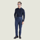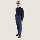 Pantalone Sartoriale Panarea in Cotone Denim Blue con Doppia Pince - Made in Italy