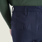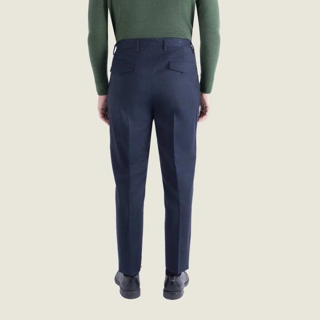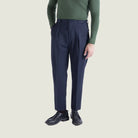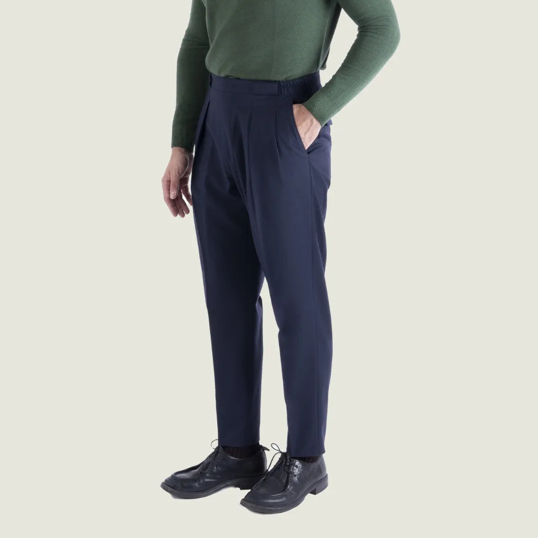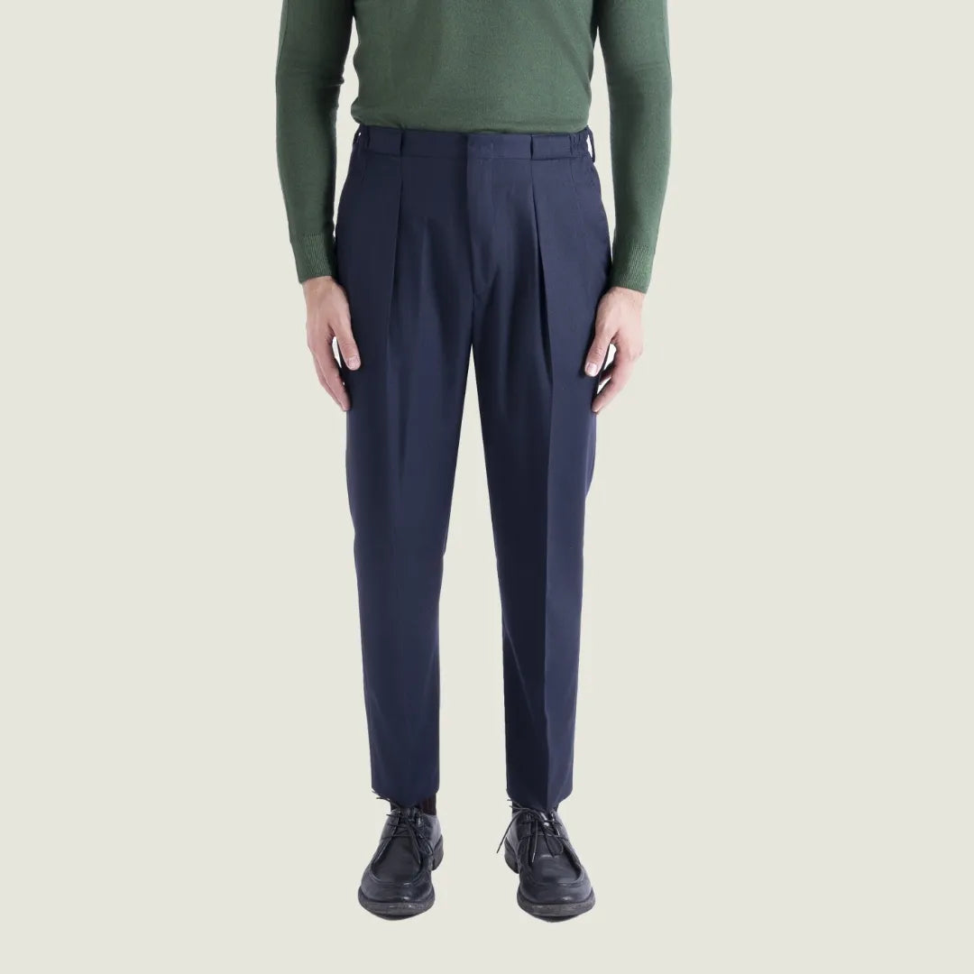Pantalone Sartoriale Panarea in Flanella Blu con Doppia Pince - Made in Italy
