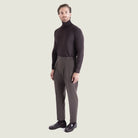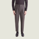 Pantalone Sartoriale Panarea in Flanella Marrone con Doppia Pince - Made in Italy