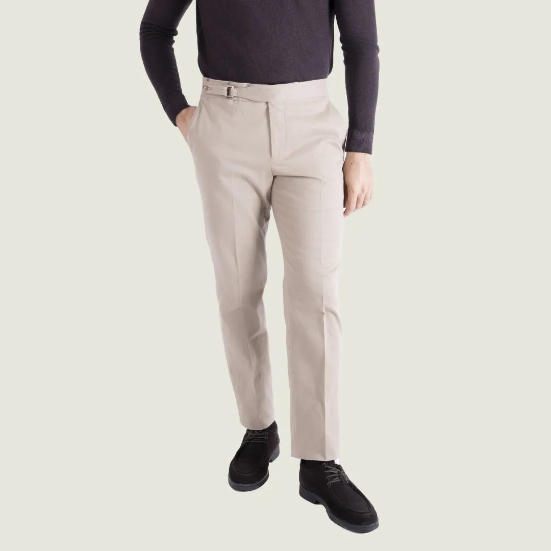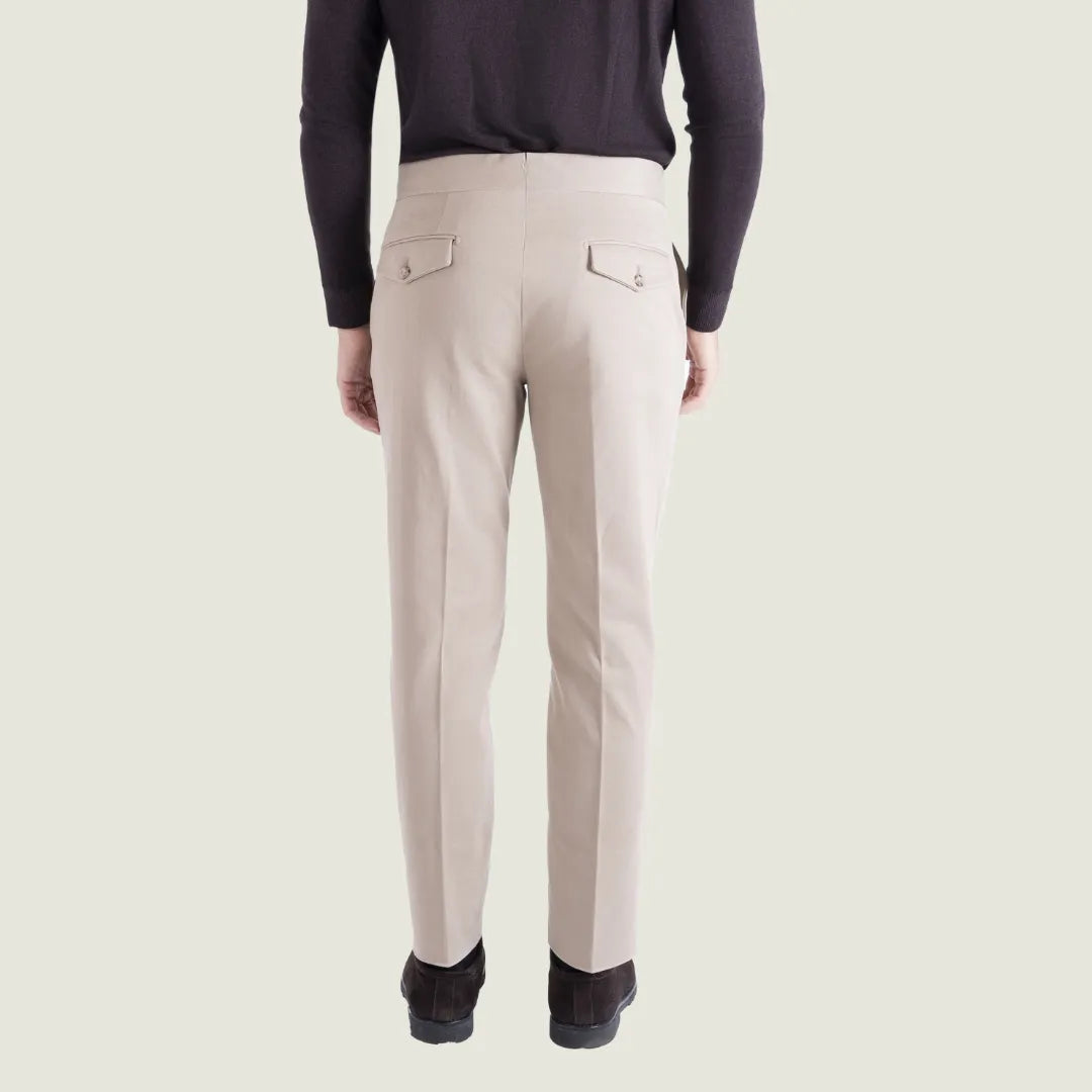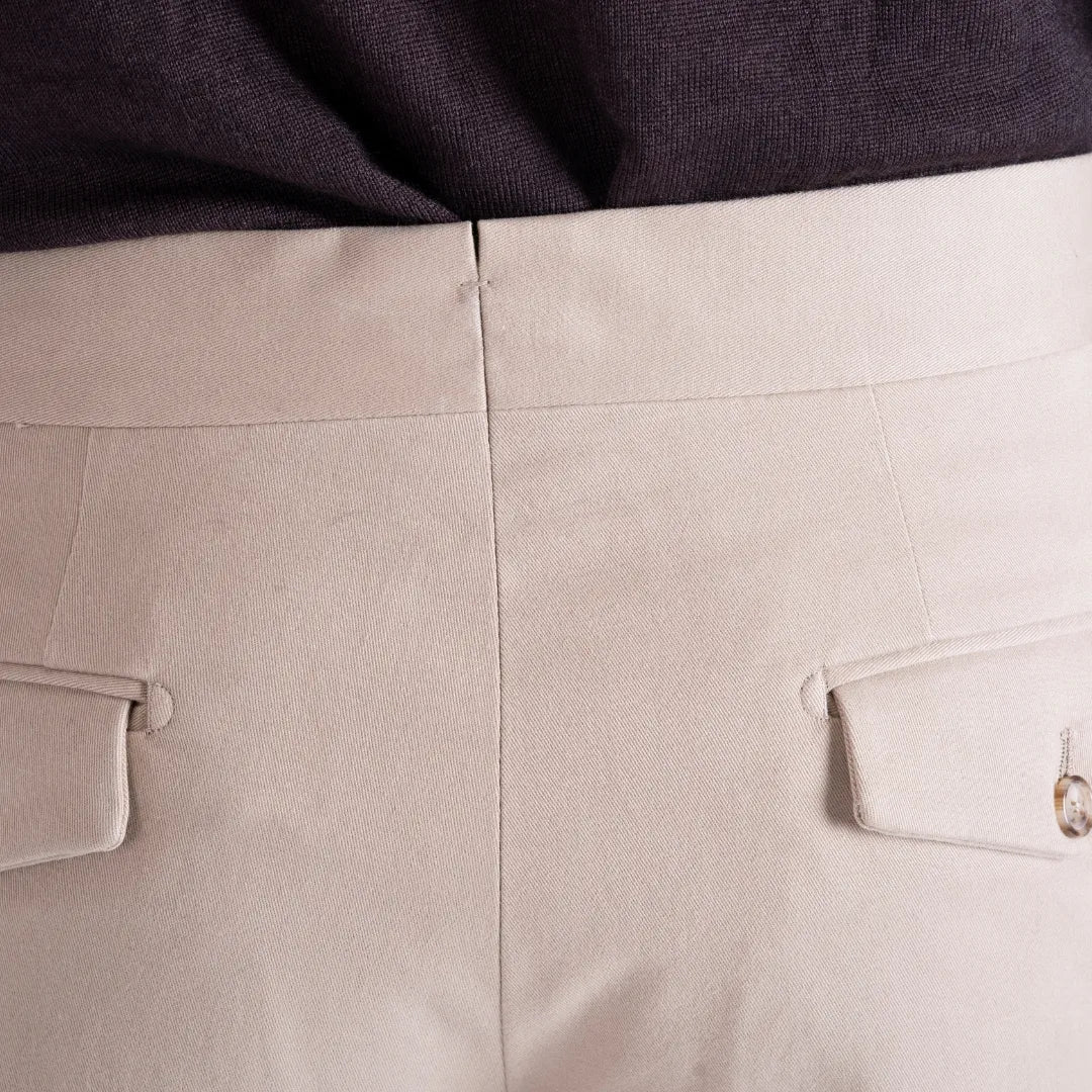 Pantalone Sartoriale Selva in Caldo Cotone Beige senza Pince - Made in Italy