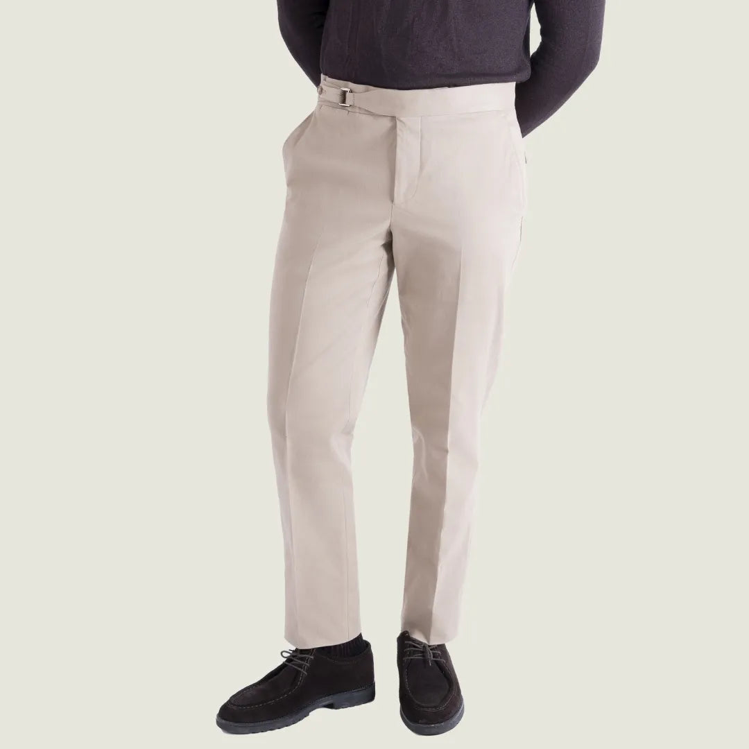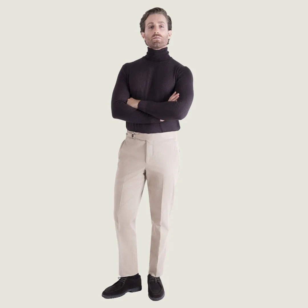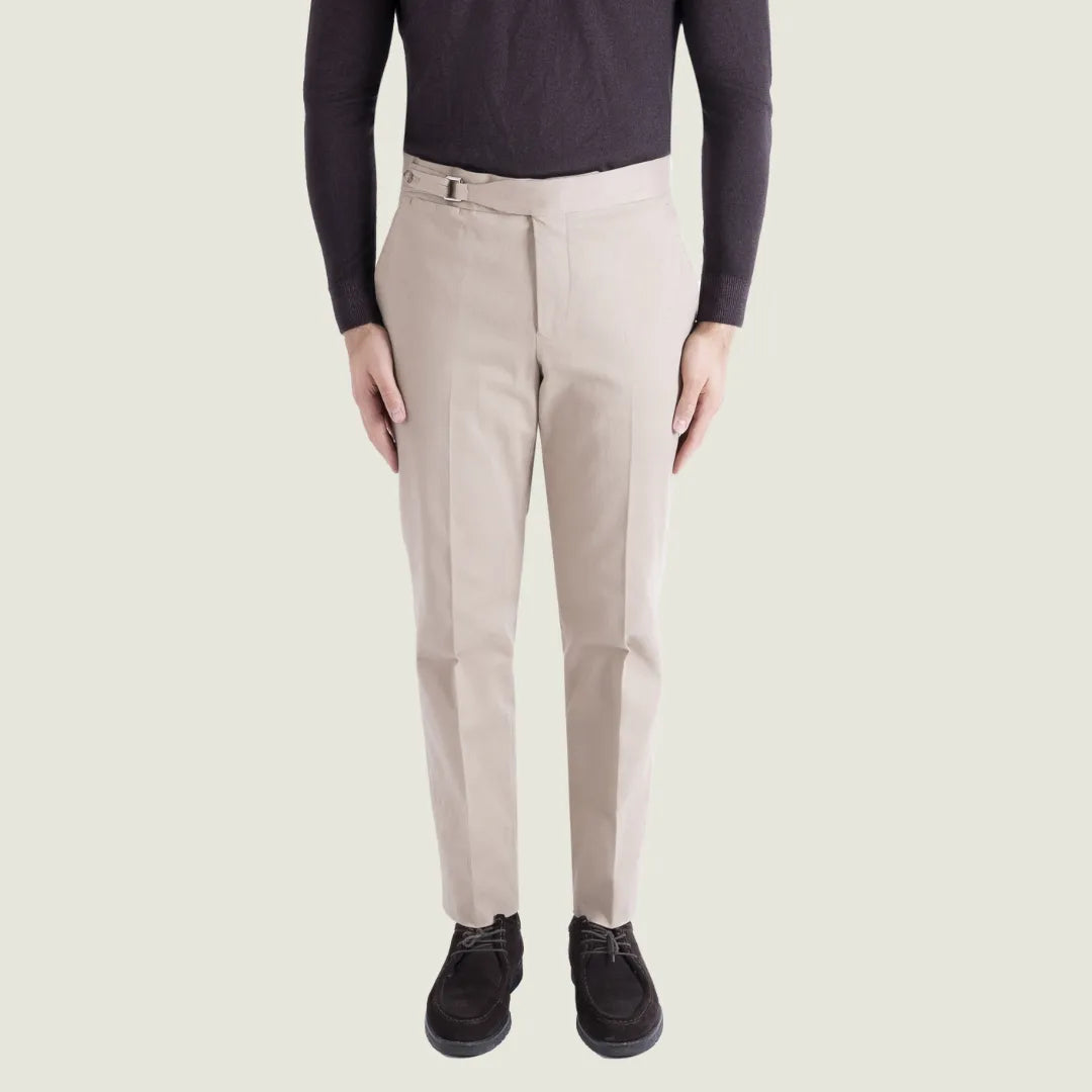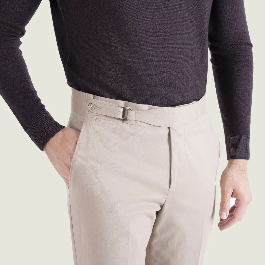 Pantalone Sartoriale Selva in Caldo Cotone Beige senza Pince - Made in Italy