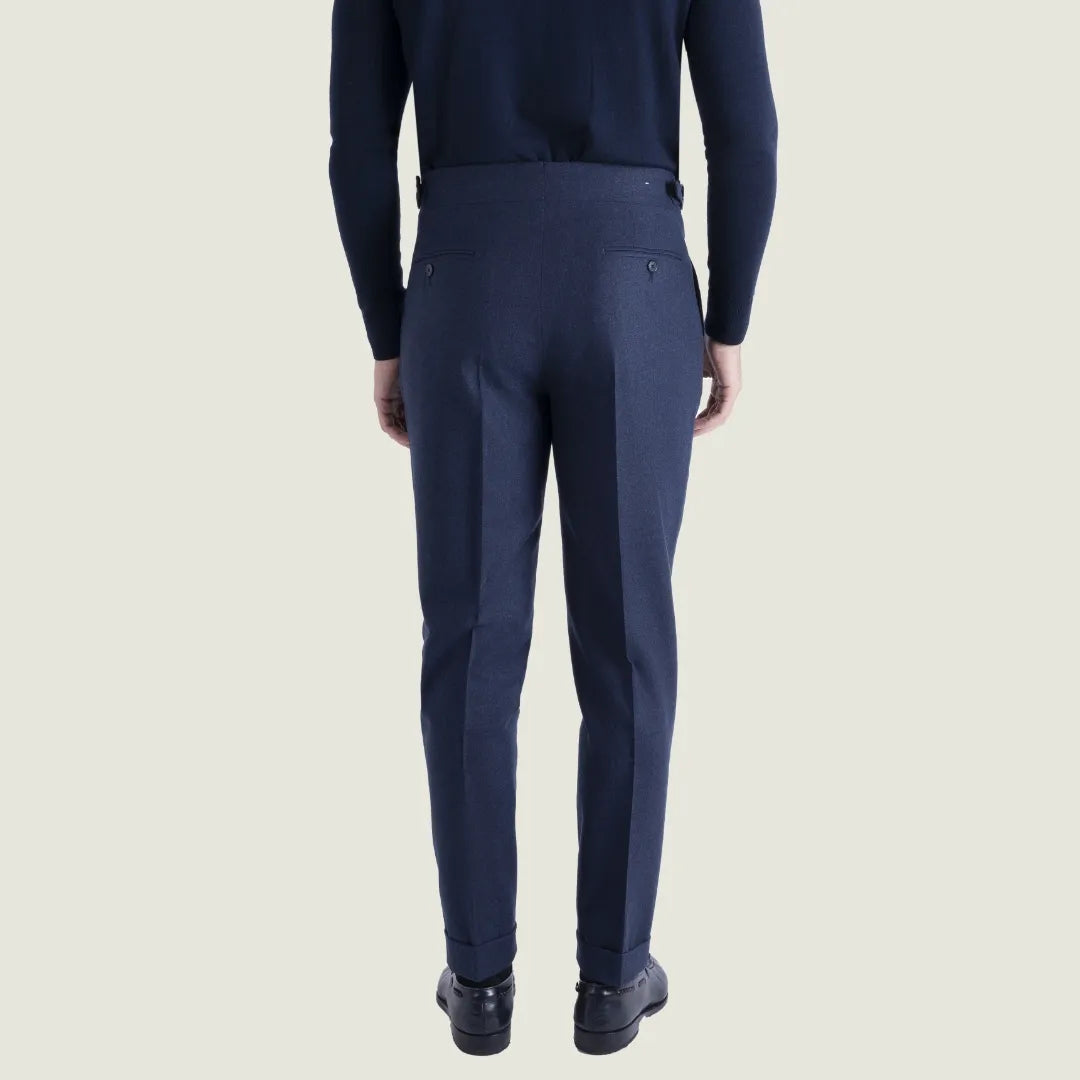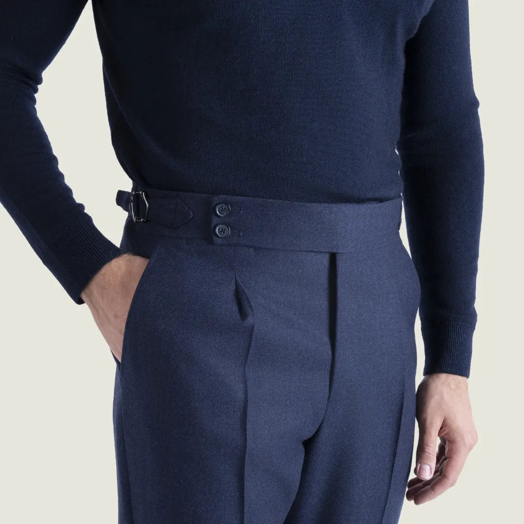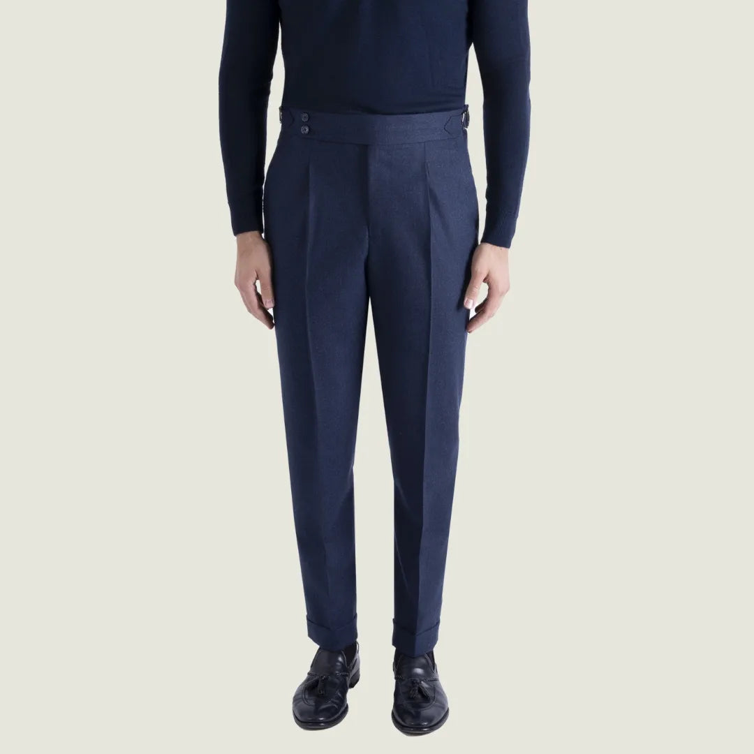 Pantalone Sartoriale Vesuvio in Flanella Lana Cashmere con Una Pince – Blu – Made in Italy