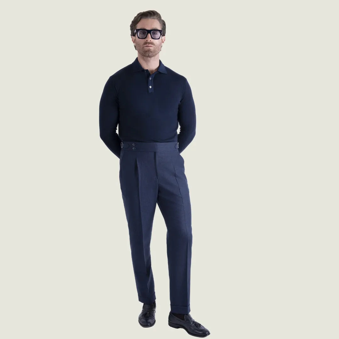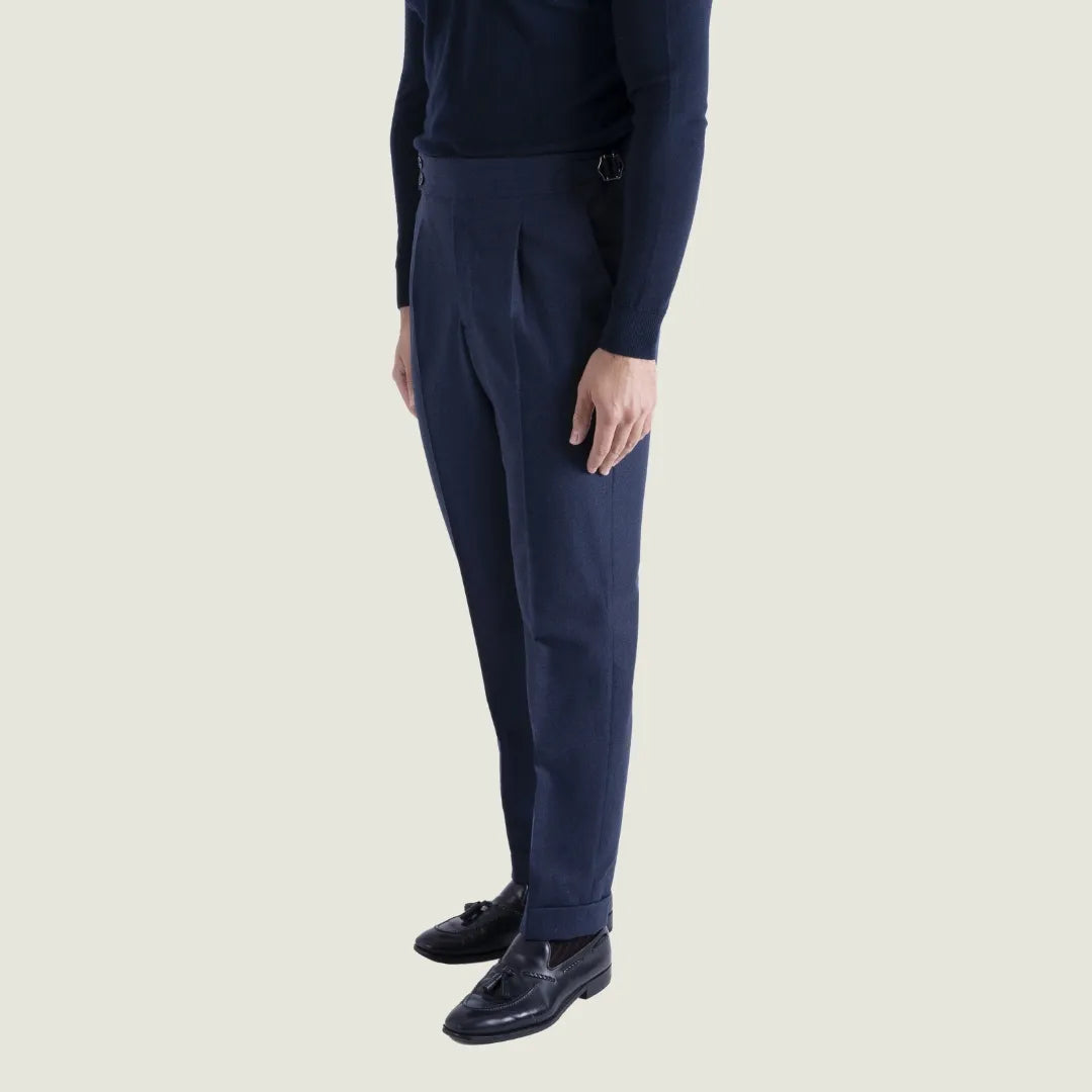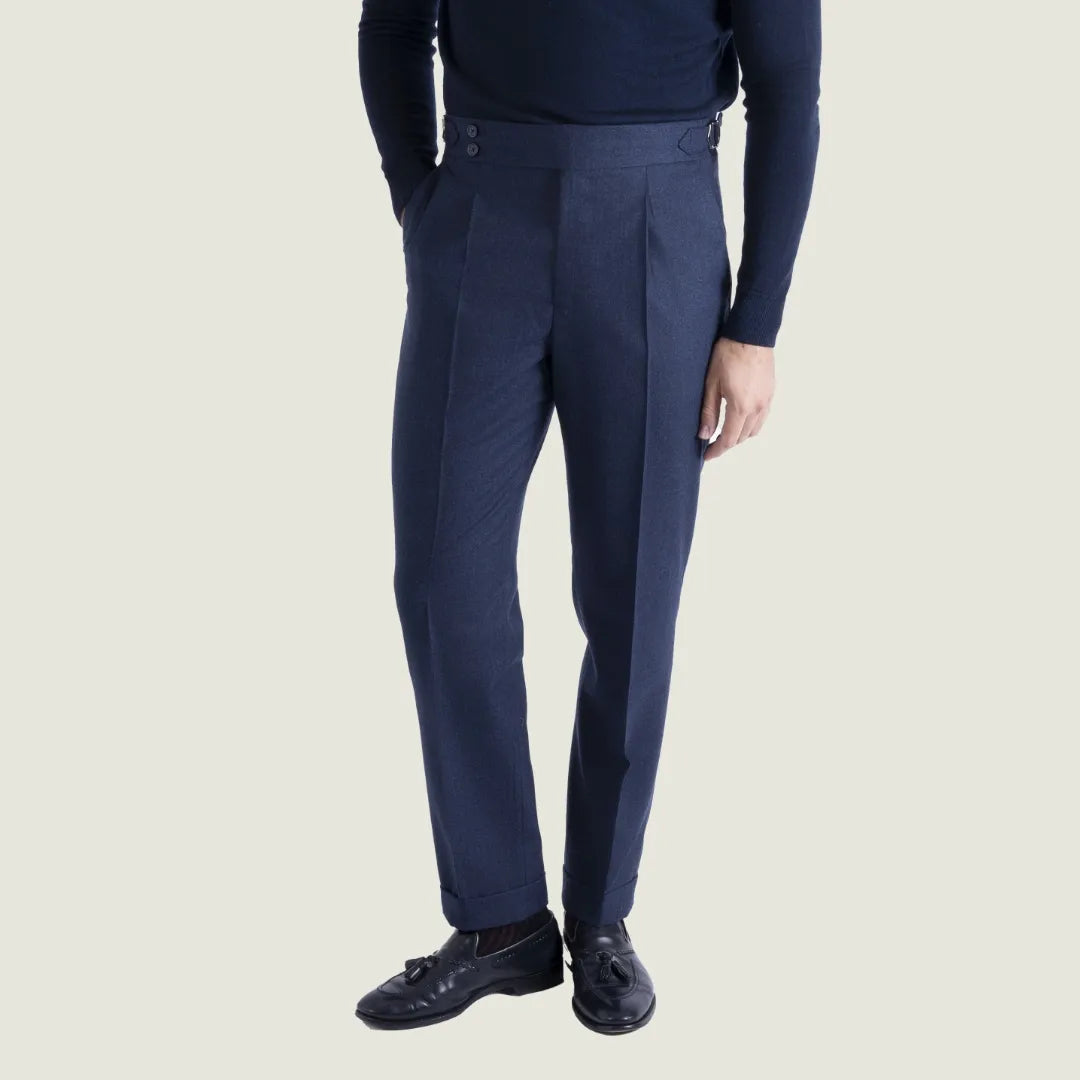 Pantalone Sartoriale Vesuvio in Flanella Lana Cashmere con Una Pince – Blu – Made in Italy