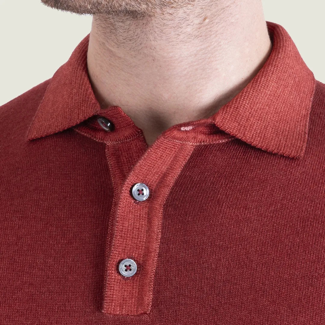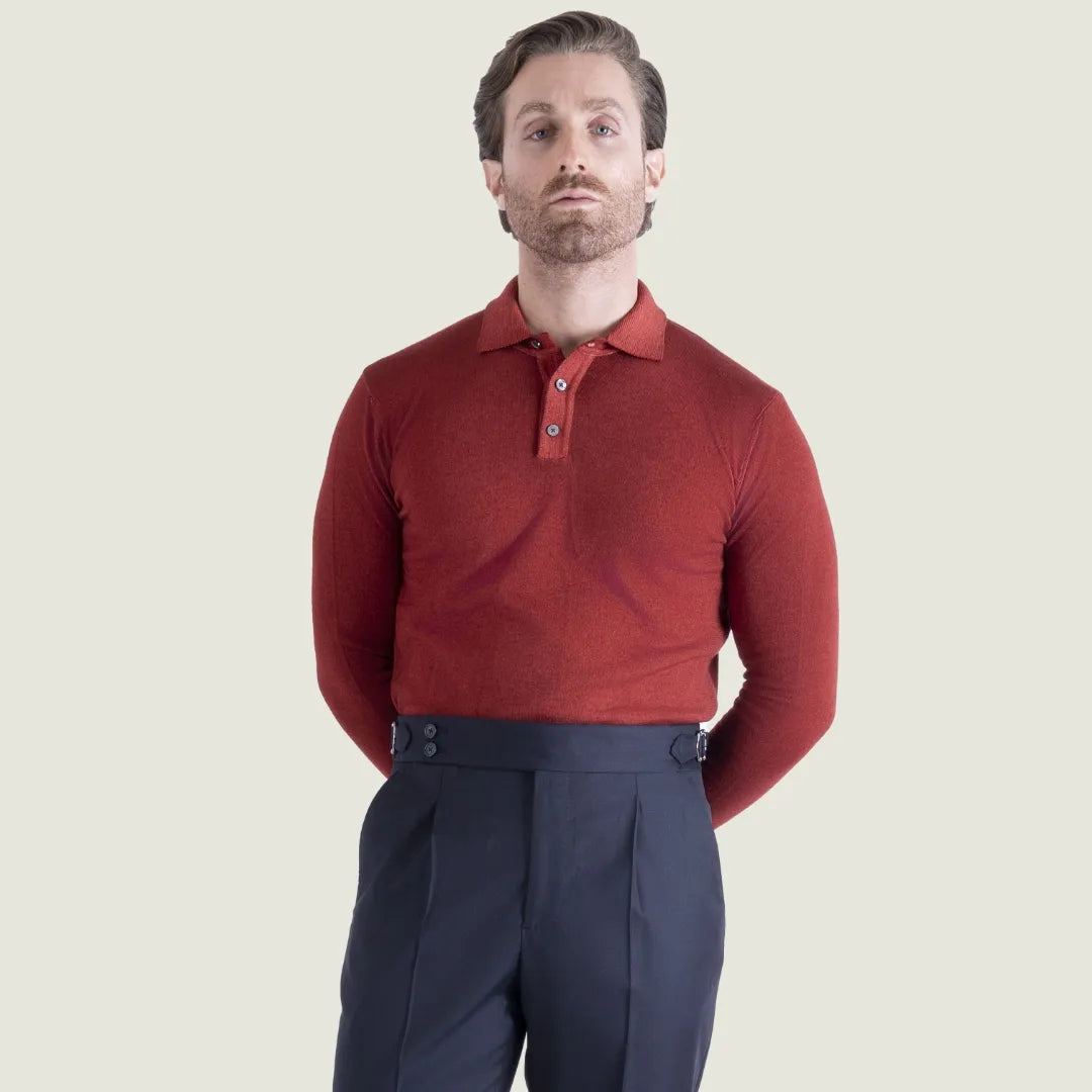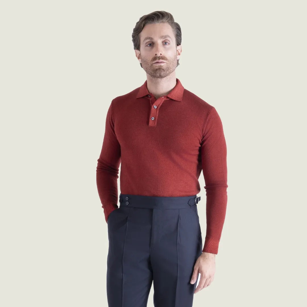 Polo Manica Lunga in Lana Merinos Finezza 14 – Aragosta – Made in Italy