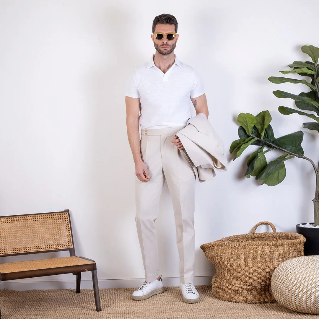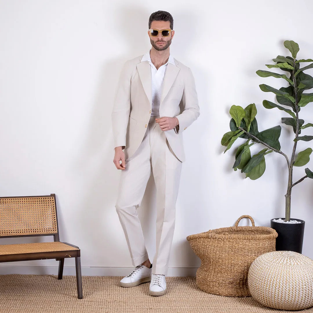 Un abito leggero e raffinato, perfetto per la stagione primavera-estate. L’Abito Sartoriale Monopetto Beige Chiaro è realizzato in cotone spigato 100%, una scelta ideale per affrontare il caldo con eleganza e comfort. La costruzione senza intelatura conferisce una vestibilità rilassata e naturale, mantenendo un’estetica pulita e curata, in perfetto stile napoletano.