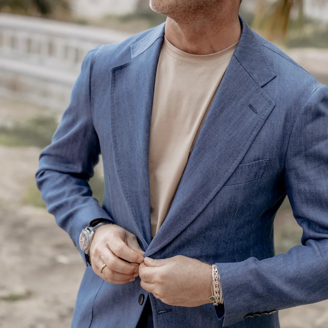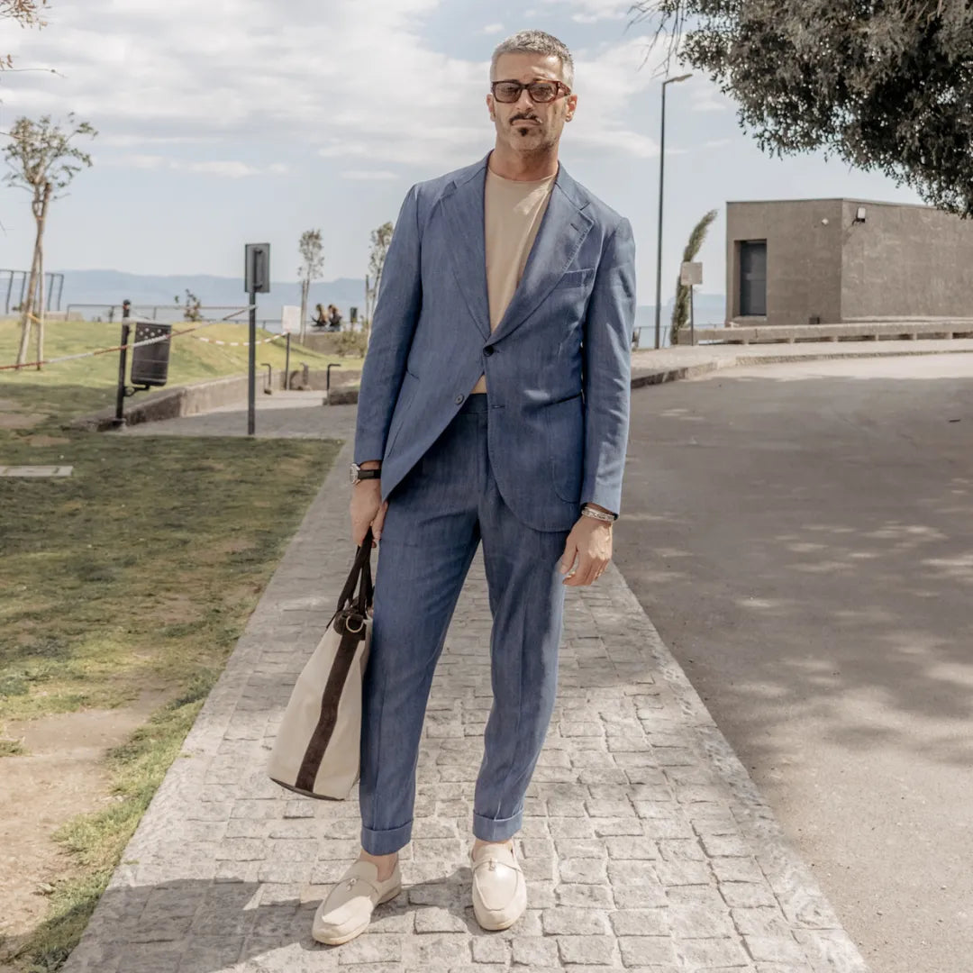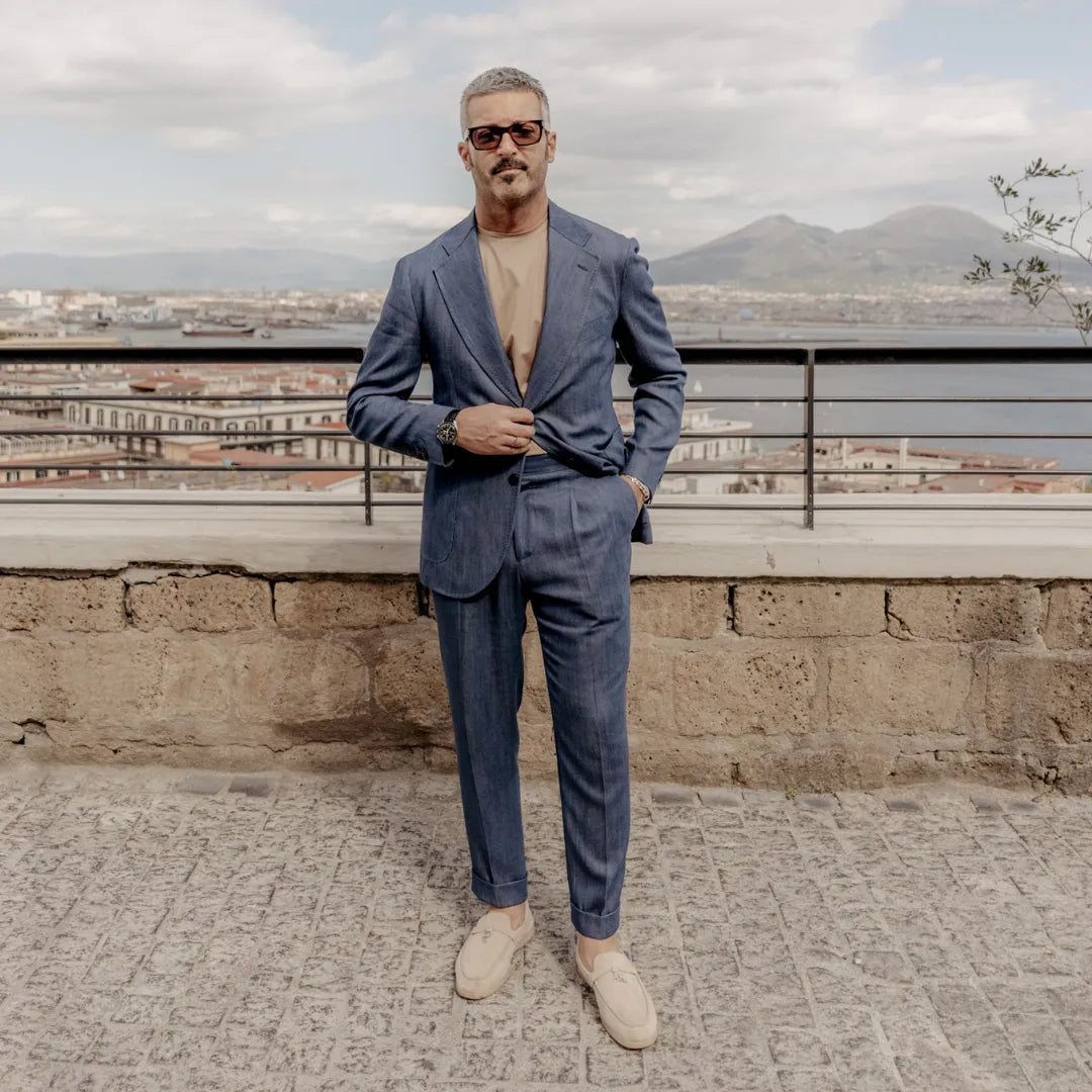 Realizzato interamente a Napoli, questo abito è pensato per accompagnarti nelle giornate primaverili ed estive con un tocco di disinvoltura. La giacca monopetto ha un rever classico da 9 cm, due tasche a toppa e una tasca a barchetta sul petto. Il pantalone Filicudi aggiunge una nota di classe e praticità. Perfetto con una t-shirt, con una camicia, per uno stile personale che non rinuncia alla sartorialità.