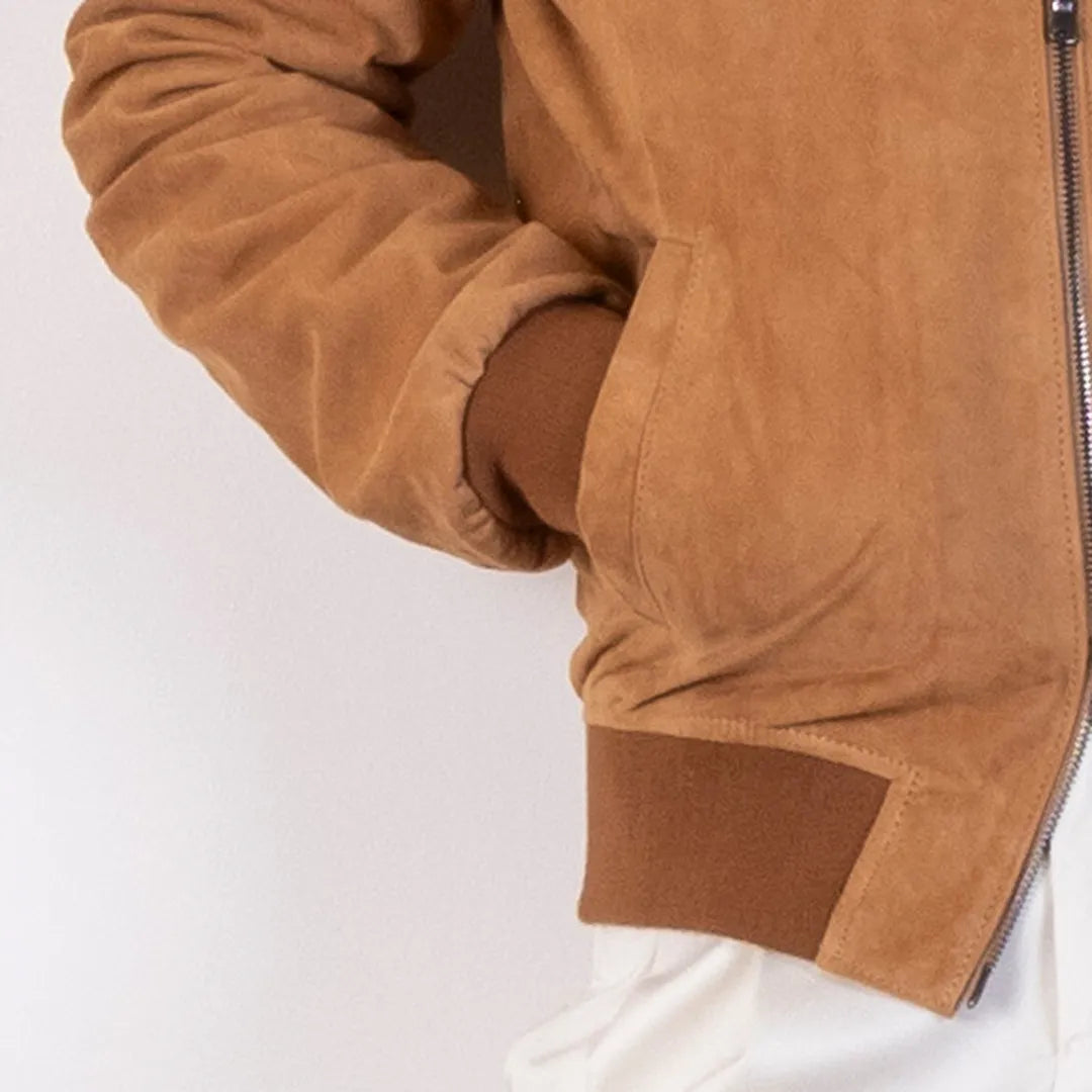 Bomber in Pelle Scamosciata Cognac – Made in Italy