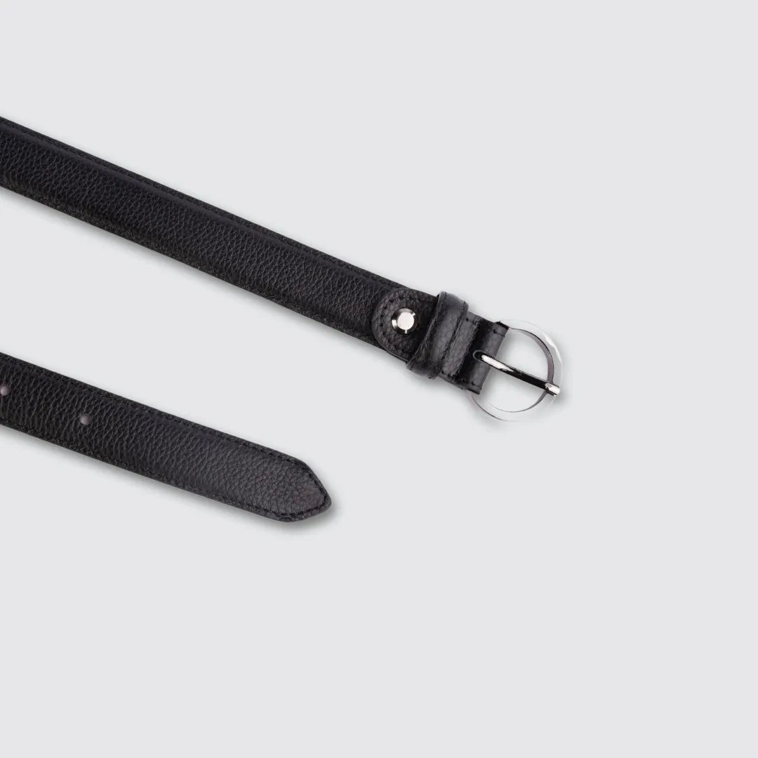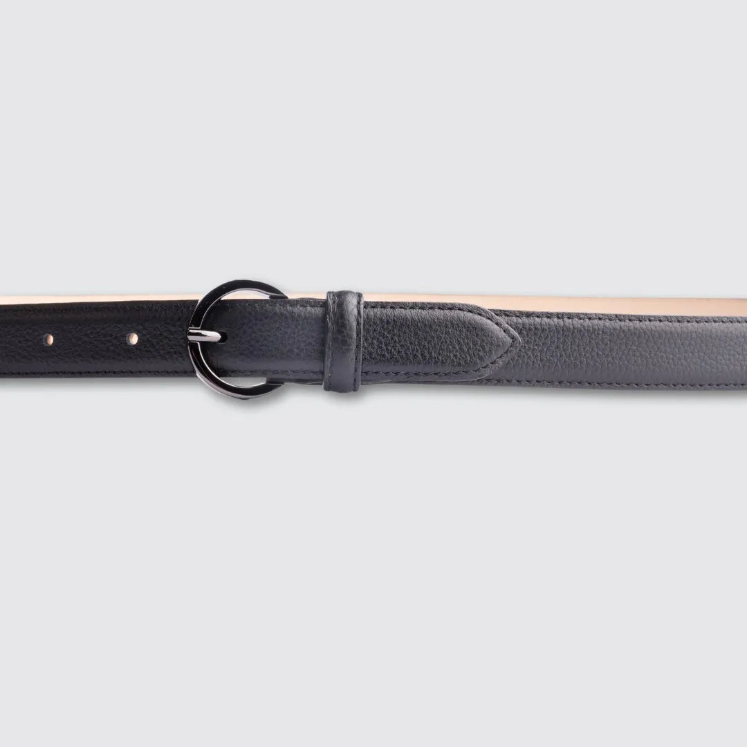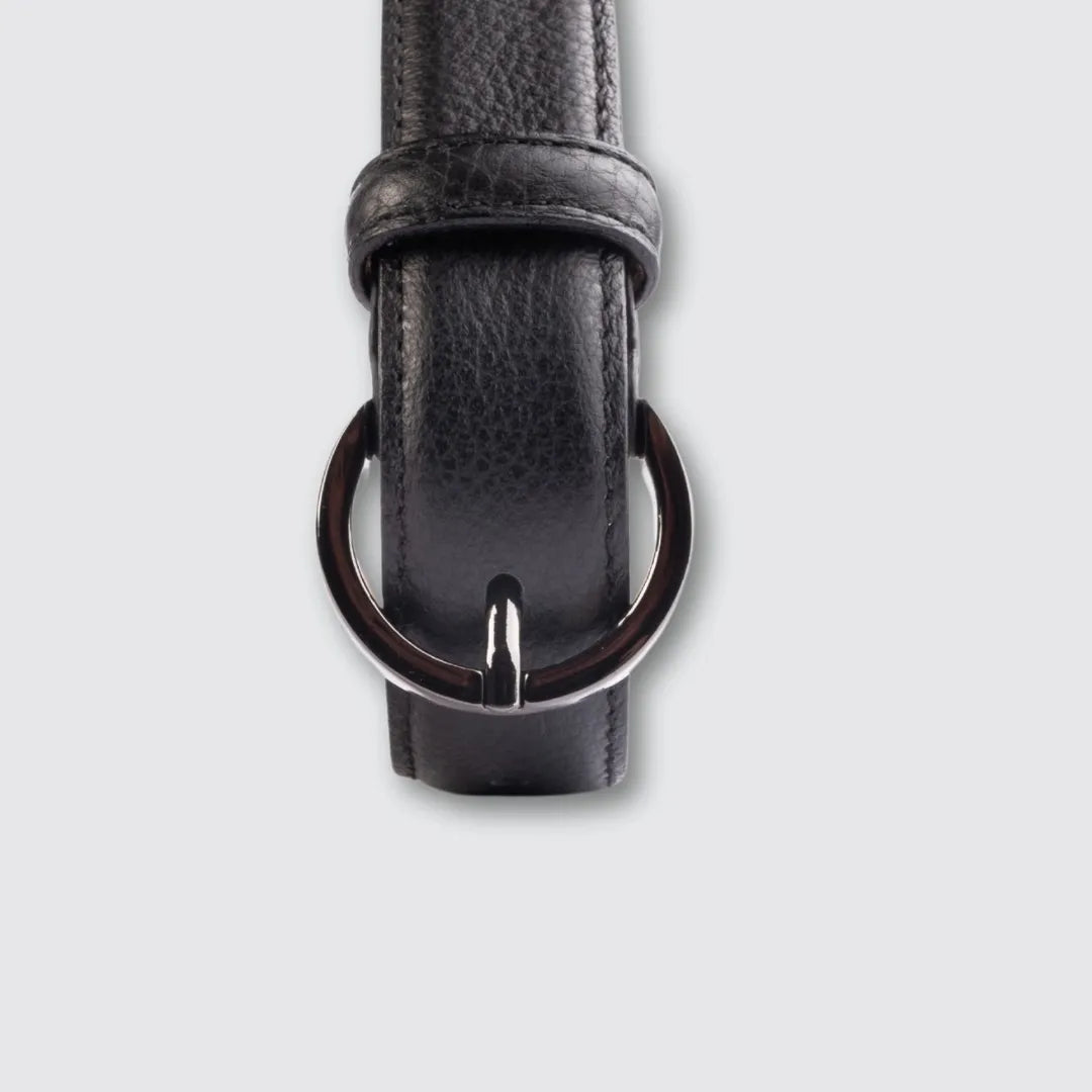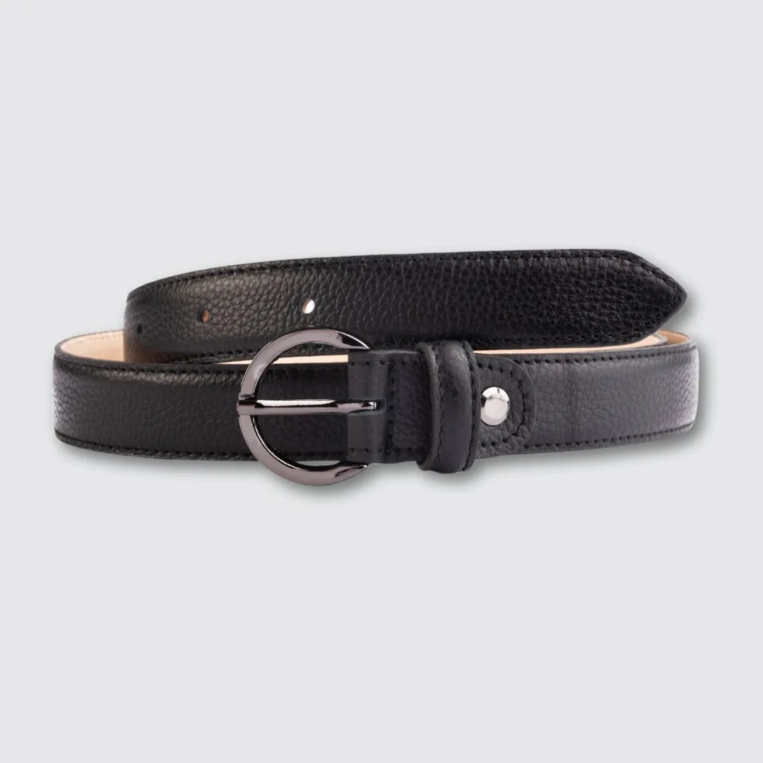 Cintura in Pelle di Vitello Martellata con Fibbia Tonda – 2,5 cm – Nera - Made in Italy