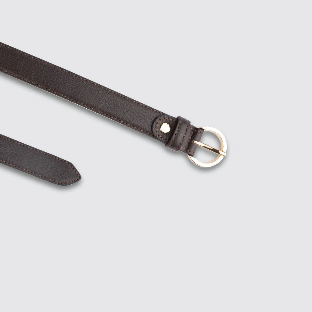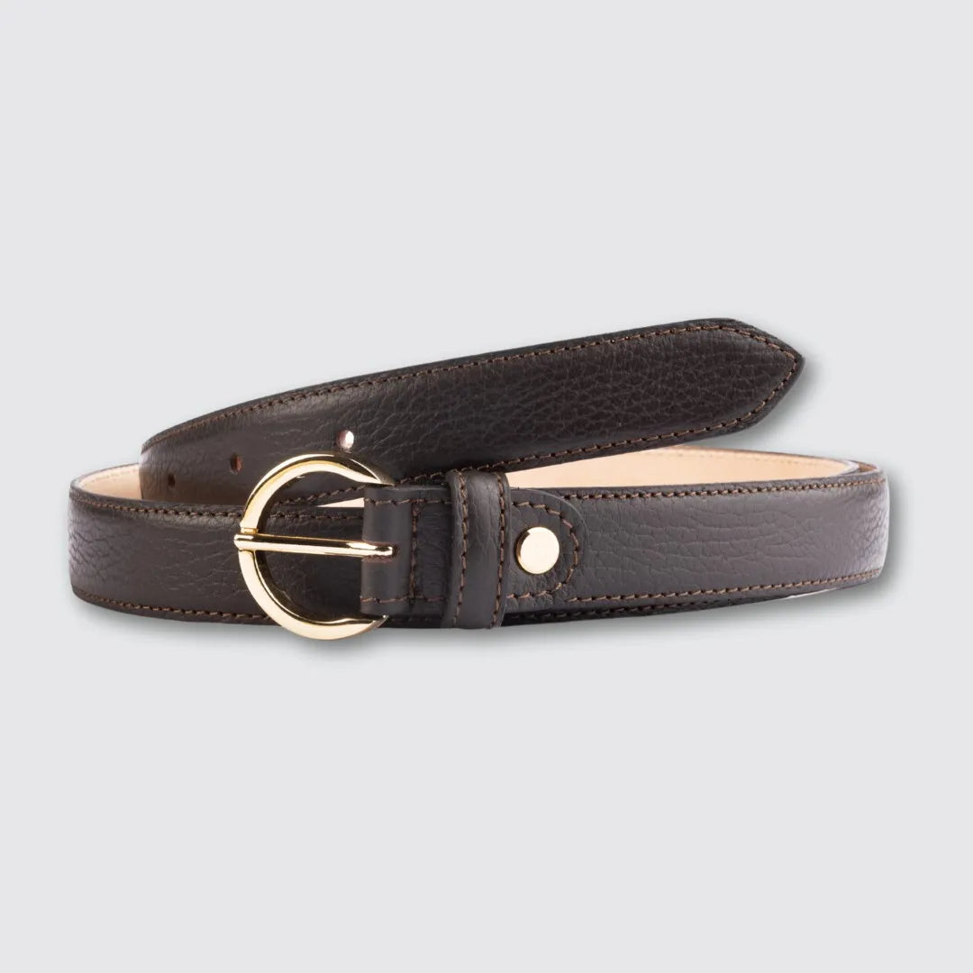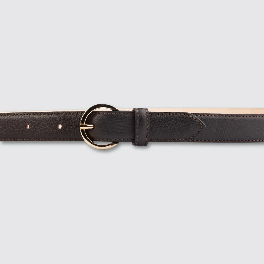Cintura in Pelle di Vitello Martellata con Fibbia Tonda – 2,5 cm – Testa di moro – Made in Italy