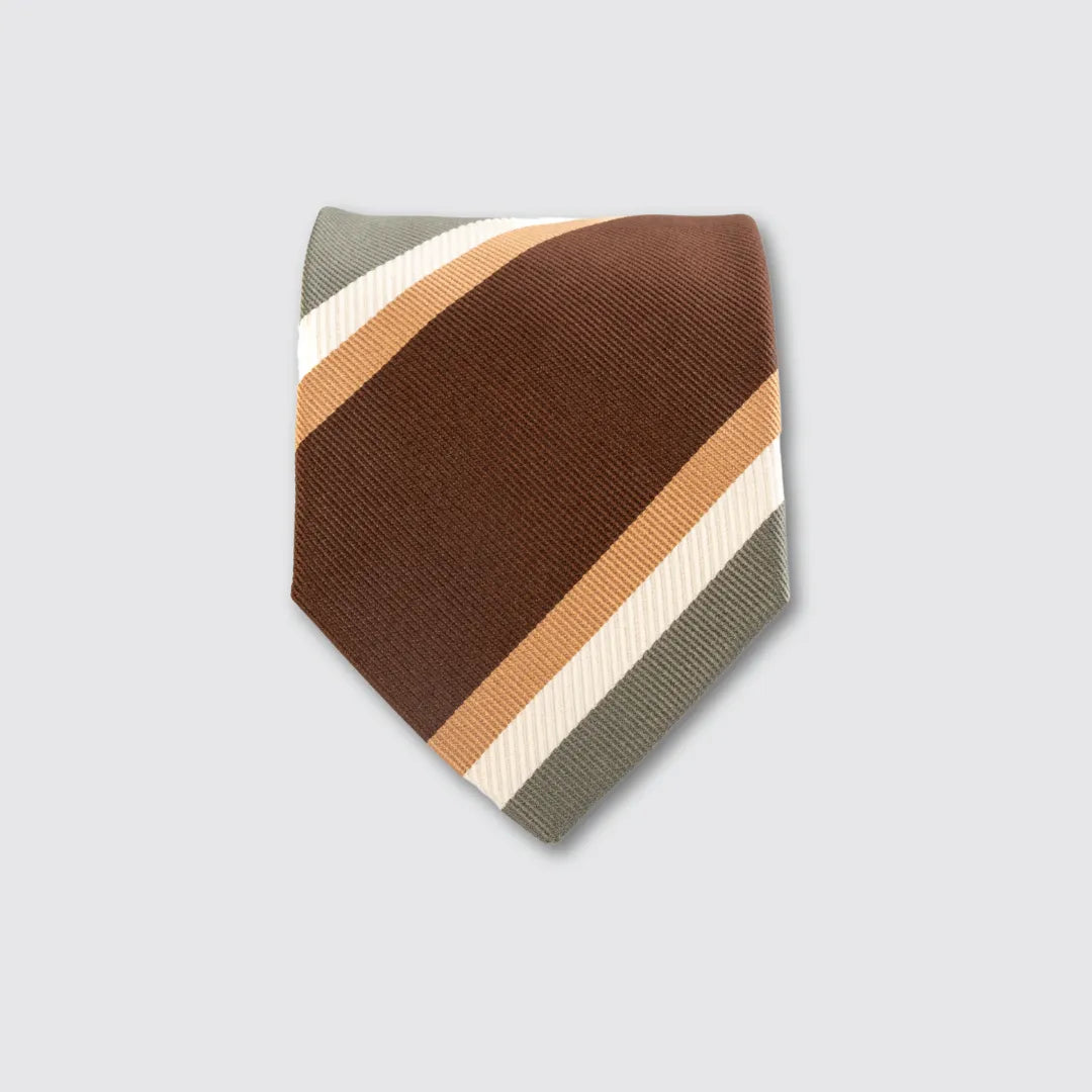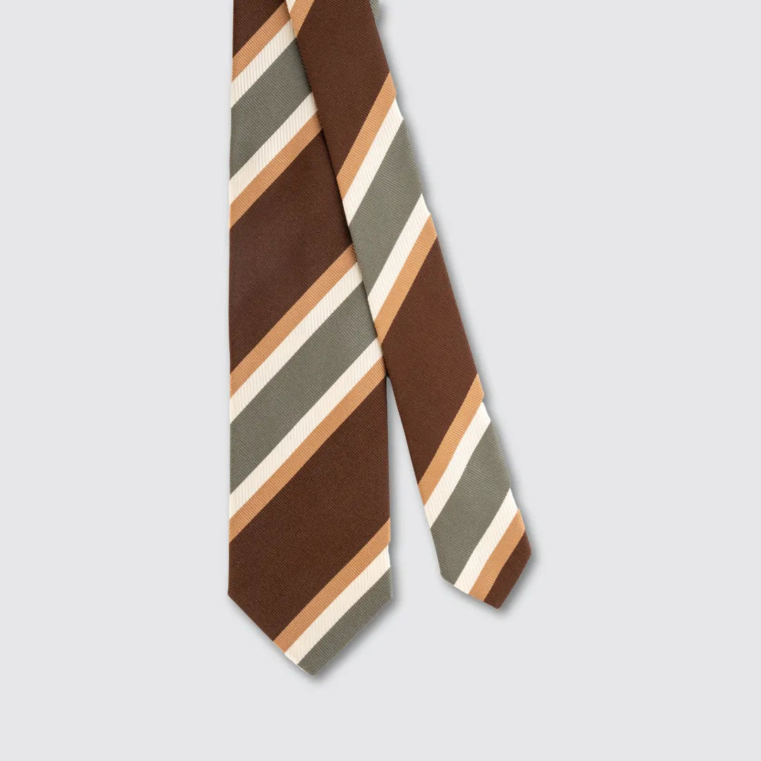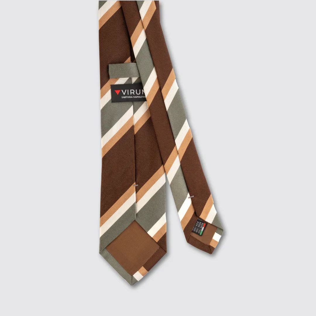 Cravatta 3 Pieghe in Seta Raso Stampata – Fantasia Regimental Marrone e Beige