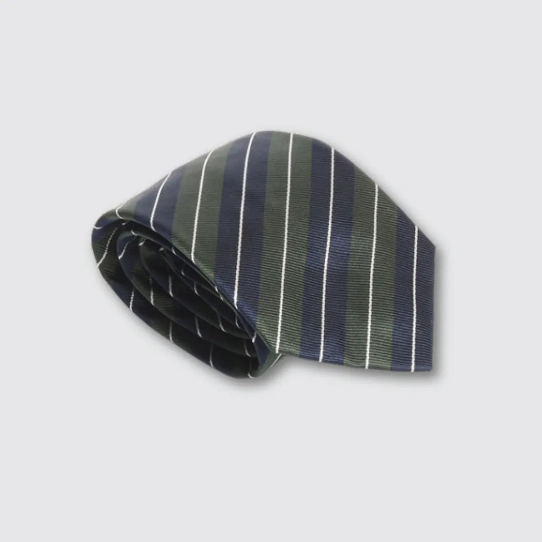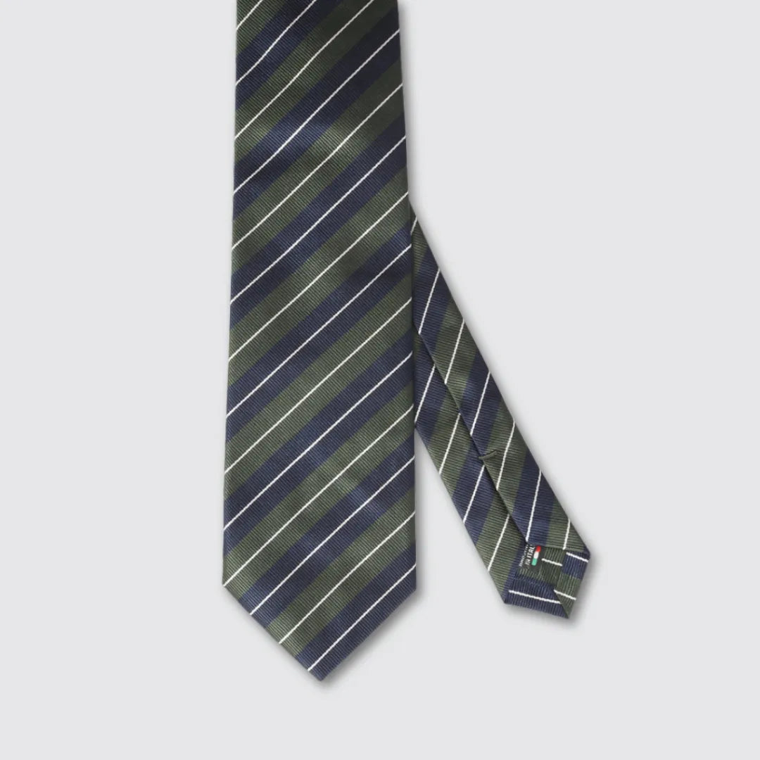 Cravatta 3 Pieghe in Seta Verde Fantasia a Righe