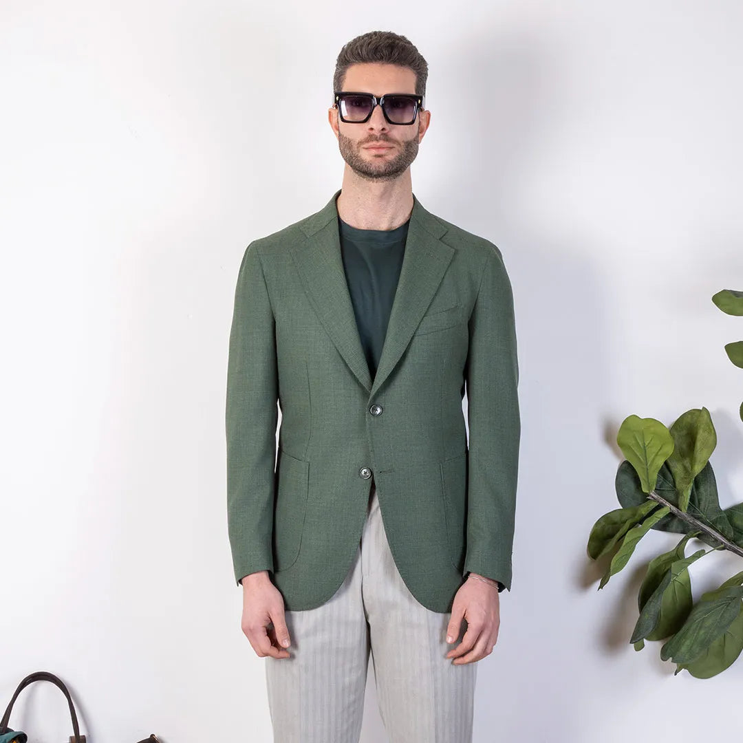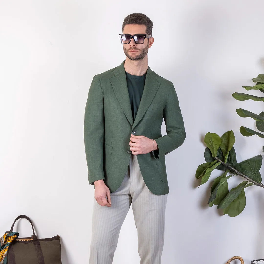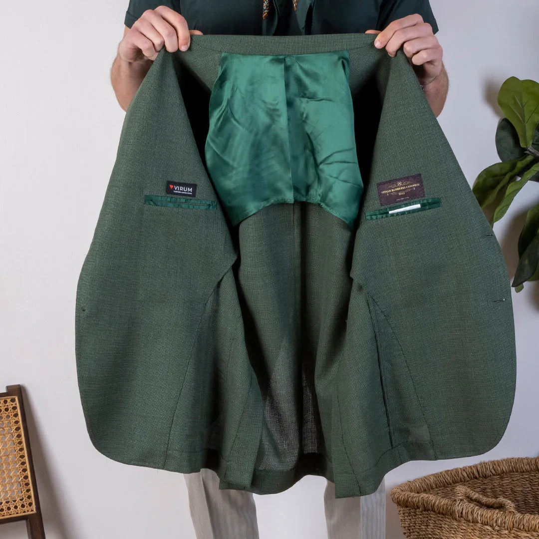 Giacca Destrutturata Hopsack Verde in Pura Lana Vitale Barberis Canonico - Made in Italy