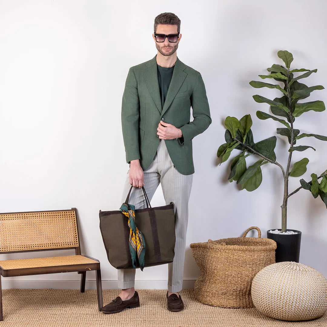 Questa giacca destrutturata, realizzata in tessuto hopsack 100% lana, è una celebrazione di stile e comfort. La tonalità verde è perfetta per chi desidera un look fresco e versatile per la stagione primavera-estate.