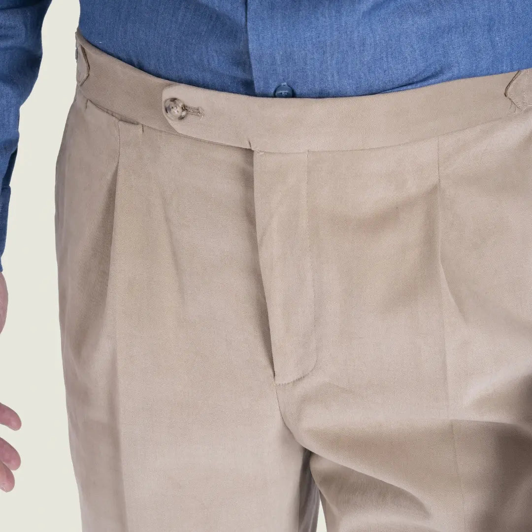 Pantalone Sartoriale Contemporary in 100% Caldo Cotone con Una Pince – Beige Plain – Made in Italy