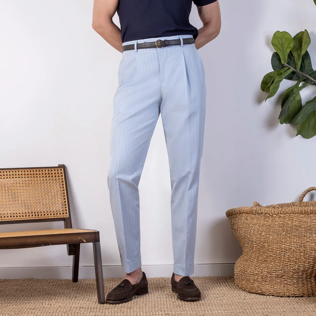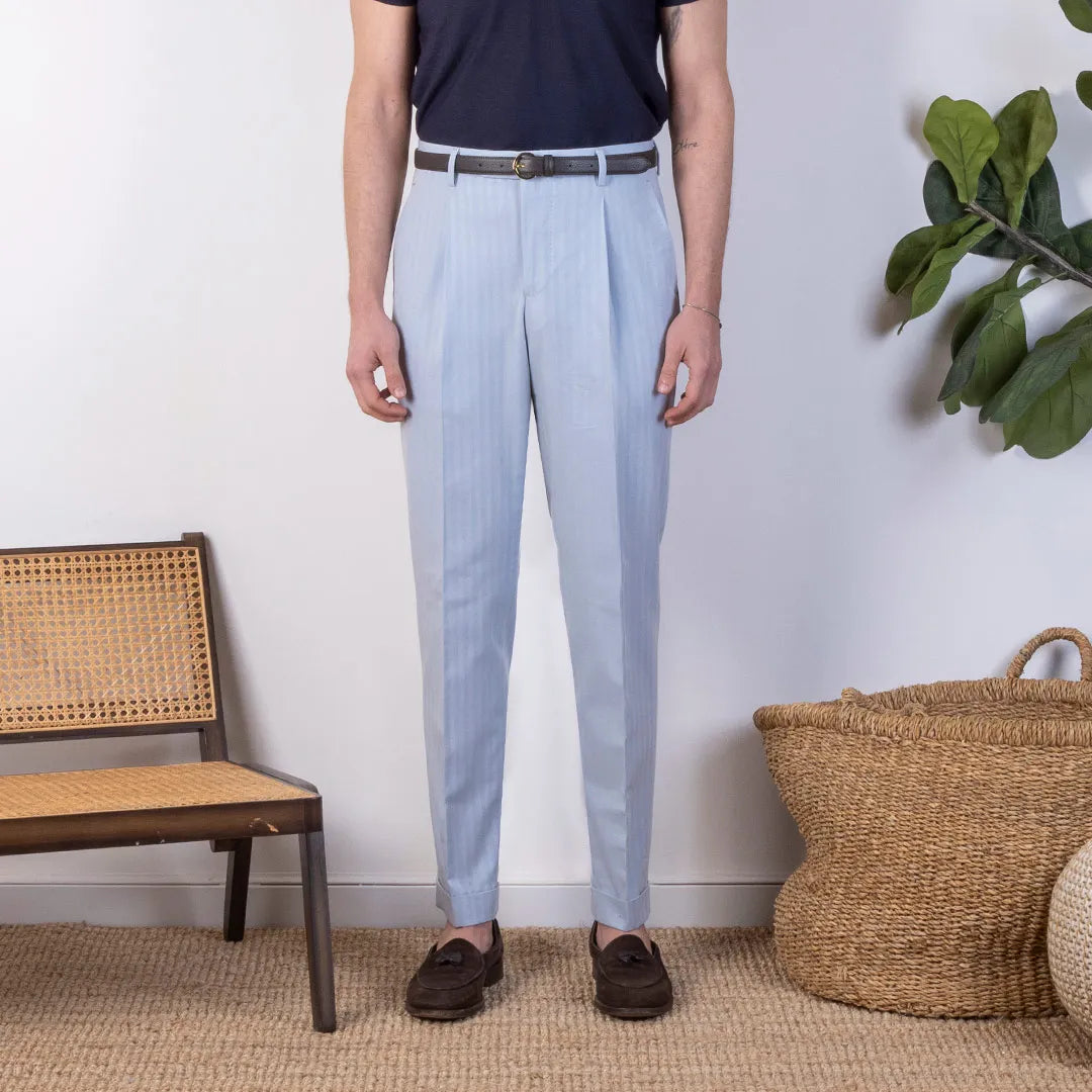 Pantalone Sartoriale Filicudi Celeste in Cotone Larusmiani - Made in Italy