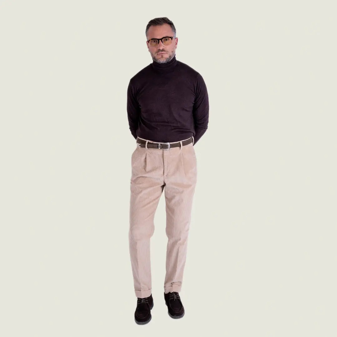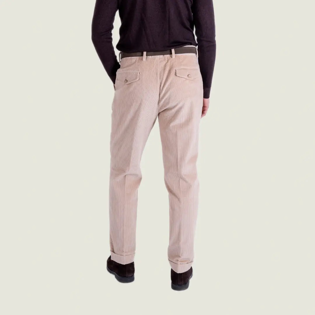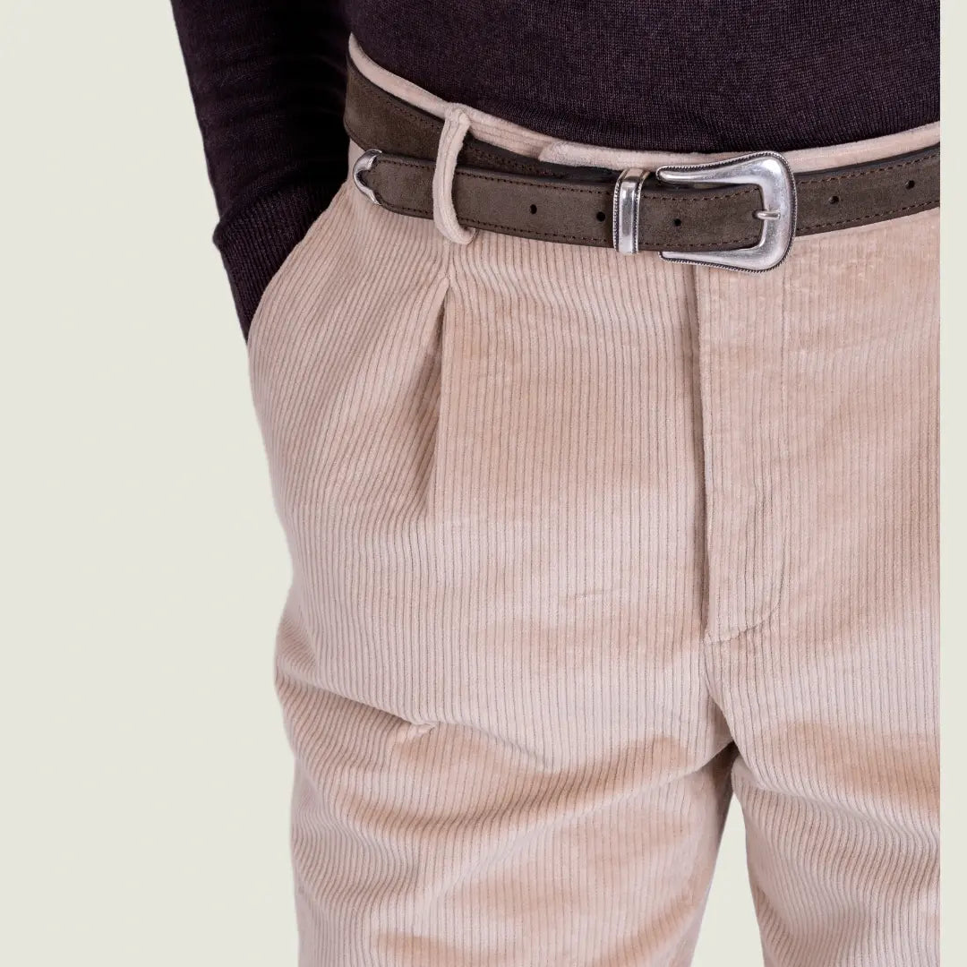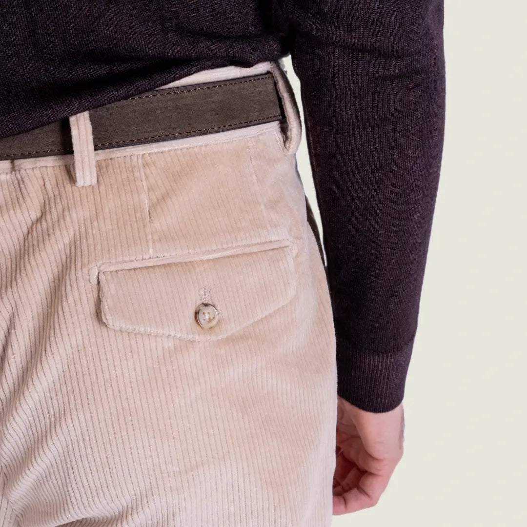 Pantalone Sartoriale Filicudi in Velluto 500 righe con Una Pince – Beige– Made in Italy