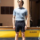 Shorts Sartoriali in Cotone Blu Padel - Made in Italy