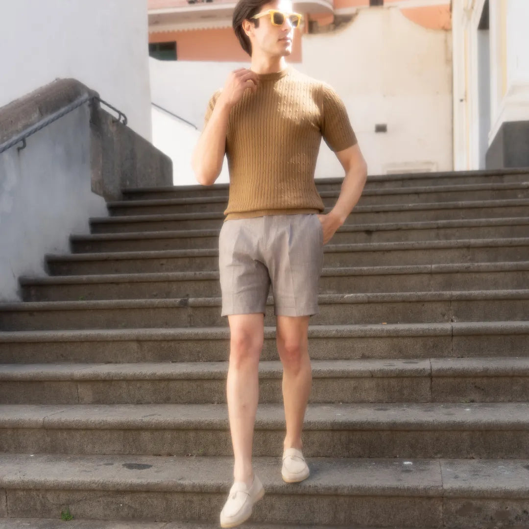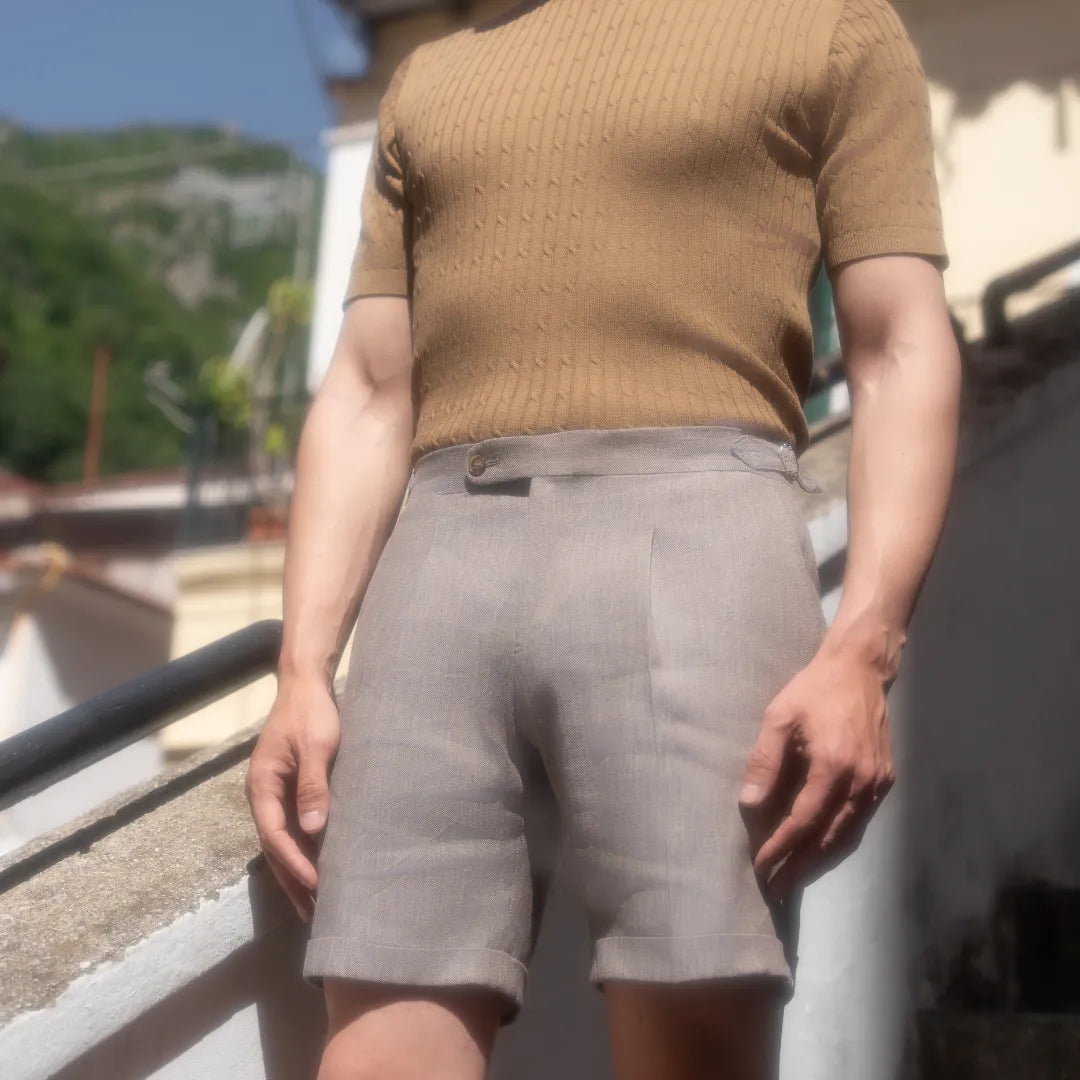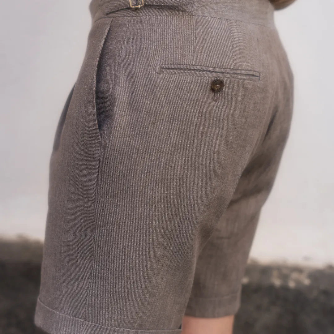 Shorts Sartoriali in Cotone e Lino Taupe - Made in Italy