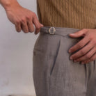 Linee sartoriali essenziali e un tessuto leggero e sofisticato: questi shorts in cotone e lino taupe sono pensati per affrontare con stile le giornate più calde. Il design con 1 pince frontale, cintura alta con fibbie laterali e il risvolto sul fondo dona al capo un'eleganza rilassata, perfetta per un'estate raffinata.