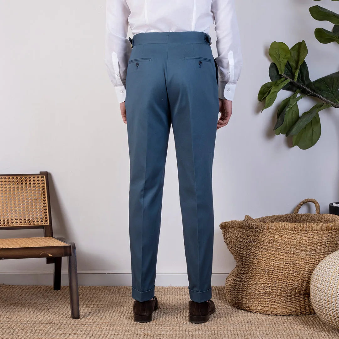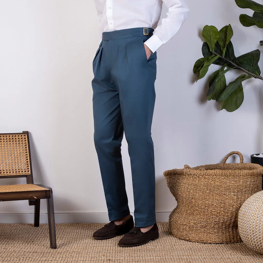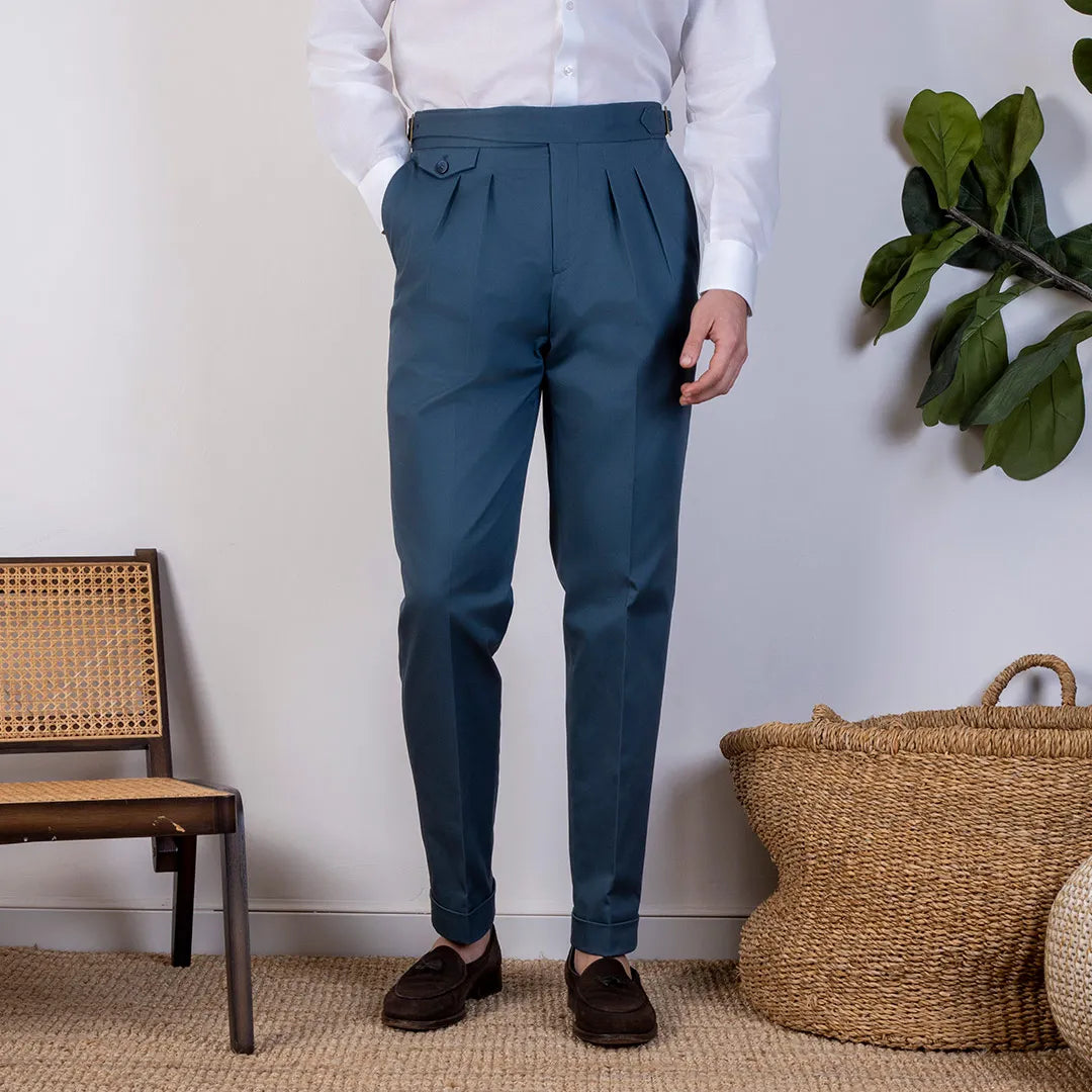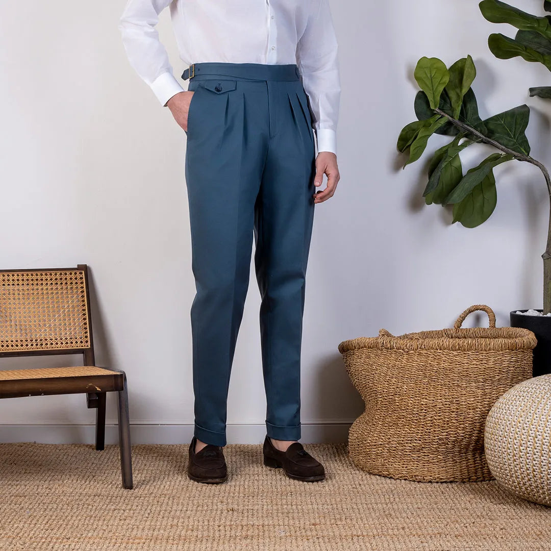 This model stands out for its unique sartorial details: a 4.5 cm high bodice , an extended Gurkha belt and side buckles , which give the garment a distinctive elegance and a customizable fit. The design is completed by a flap on the watch pocket , 2 French pence , front American pockets and back welt pockets , for a perfect balance between functionality and refinement.