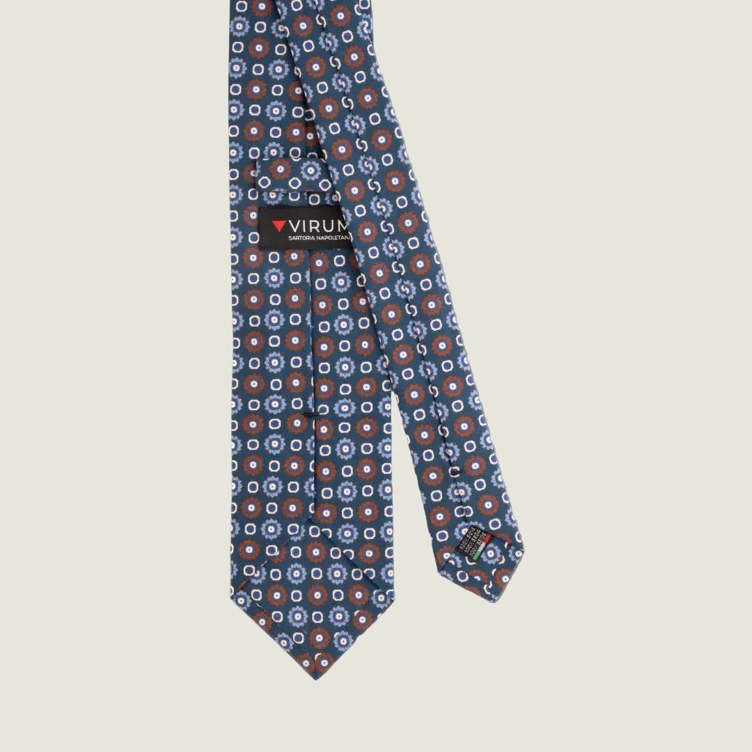 A refined and distinctive tie, ideal for those who want an accessory capable of adding character to their style. Made of 100% printed satin silk , this three-fold tie features a floral pattern in shades of orange and white on a blue background. A perfect balance between classic elegance and modernity, designed for those who love to stand out with style.