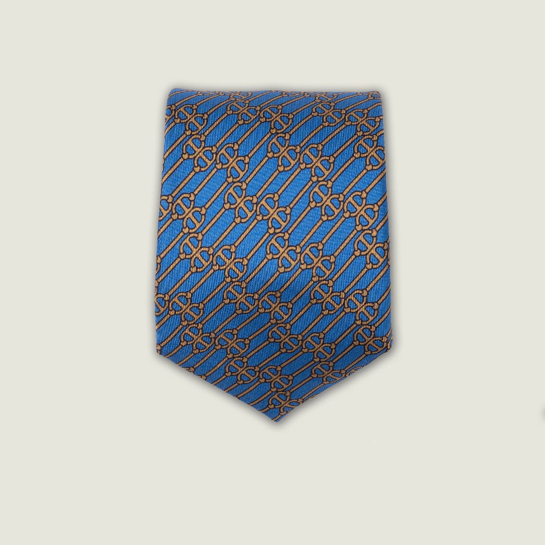 Cravatta 3 Pieghe - 100% Seta - Fantasia a Catena Celeste – Made in Italy