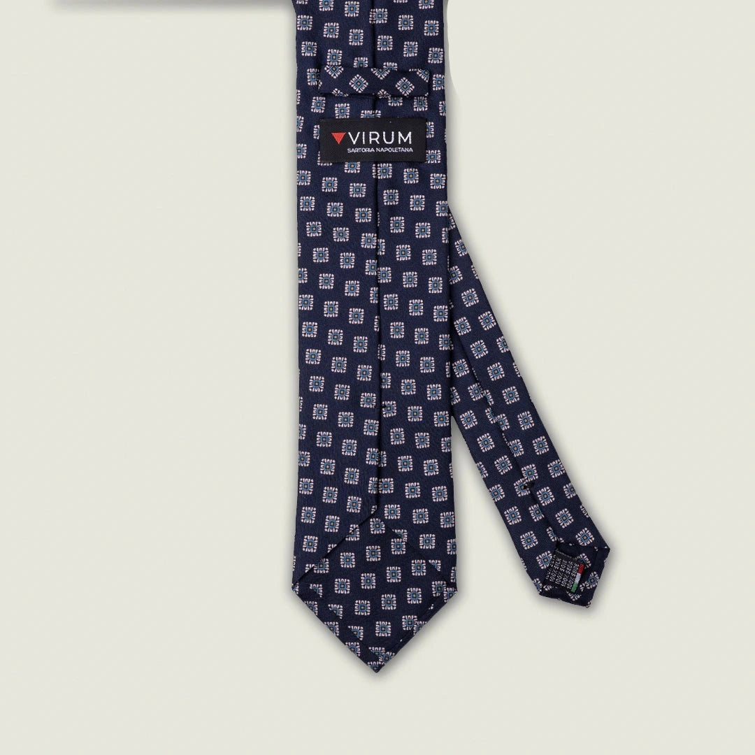 Cravatta 3 Pieghe - 100% Seta - Fantasia Geometrica Blu – Made in Italy