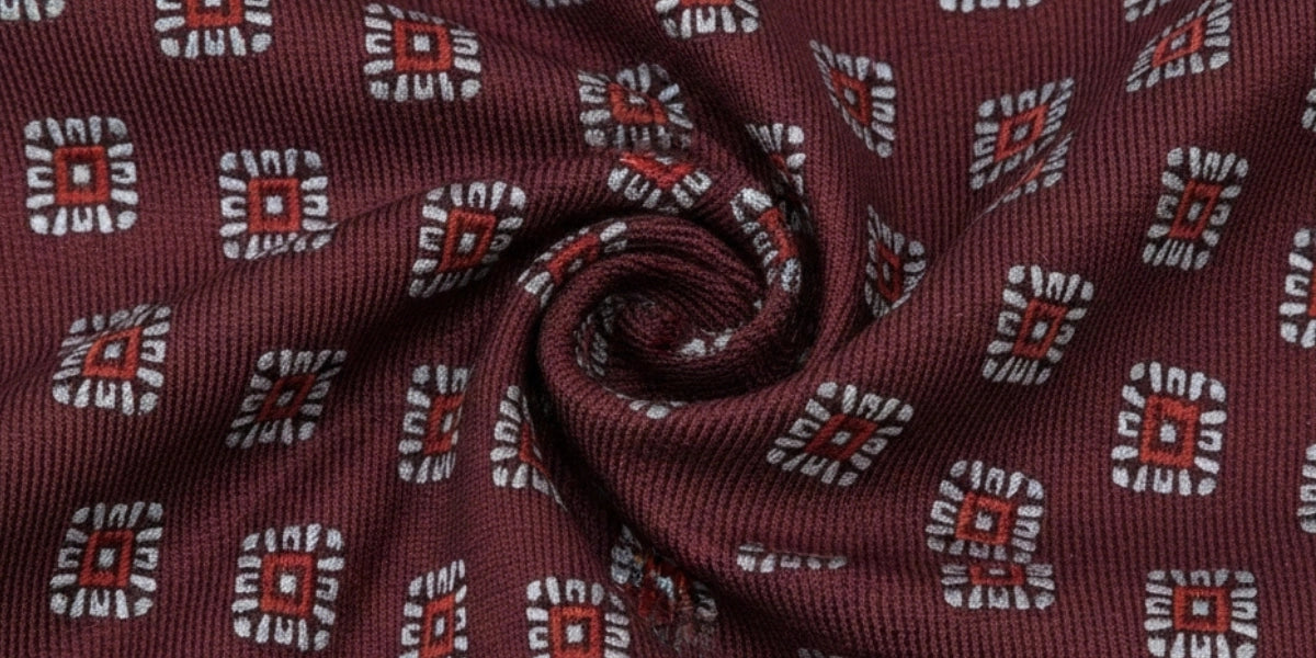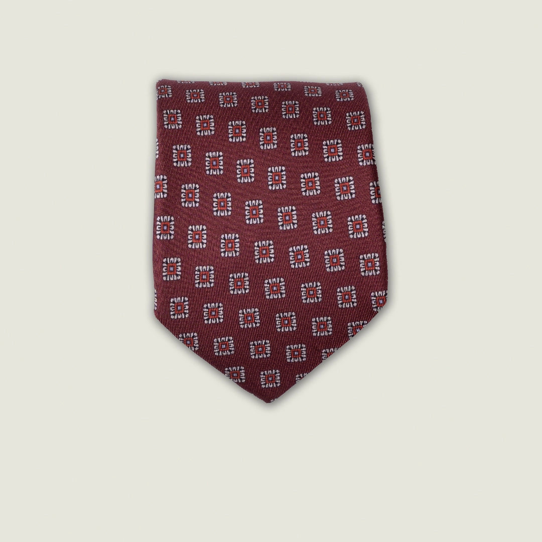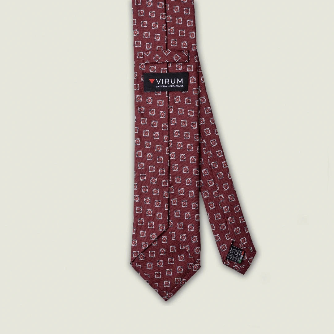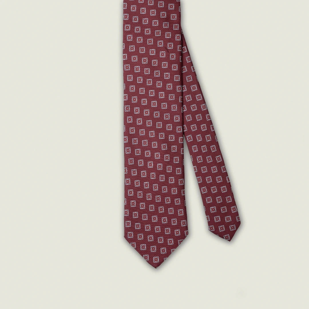 Cravatta 3 Pieghe - 100% Seta - Fantasia Geometrica Bordeaux – Made in Italy