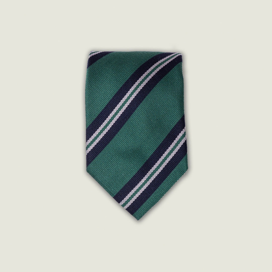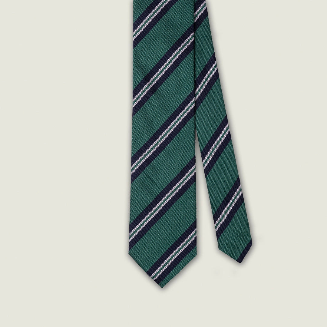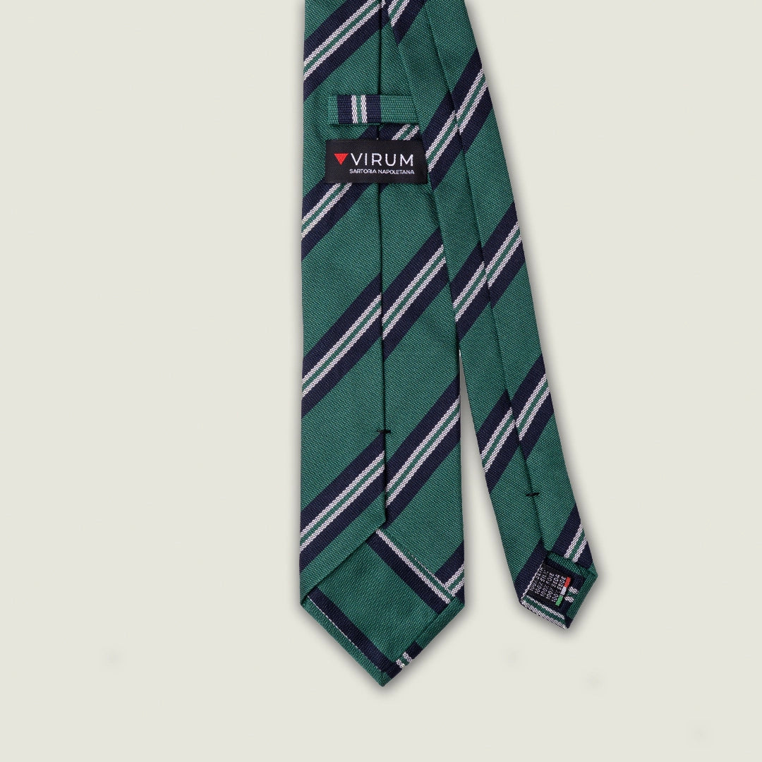 Cravatta 3 Pieghe - 100% Seta - Fantasia Regimental Verde – Made in Italy