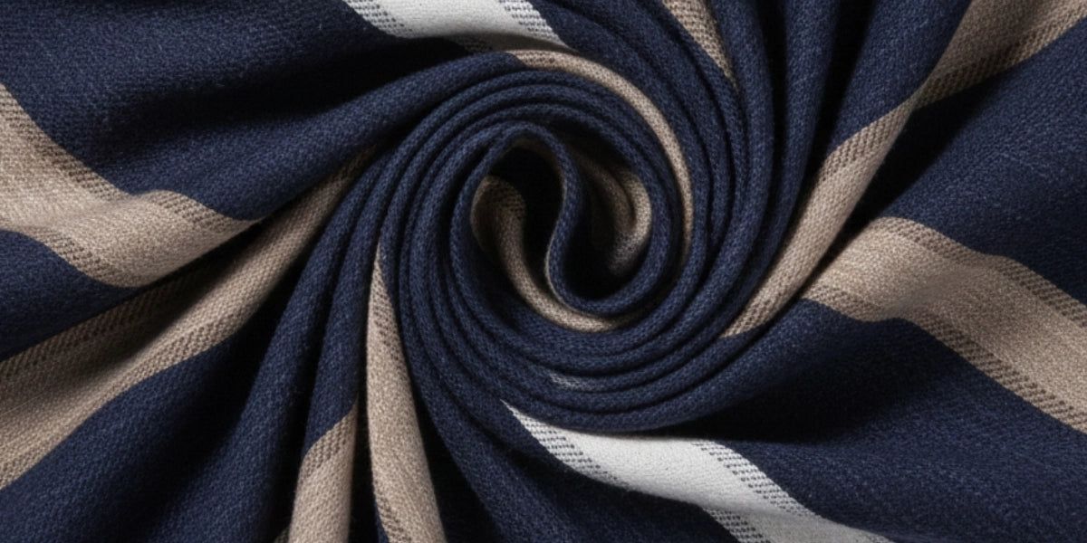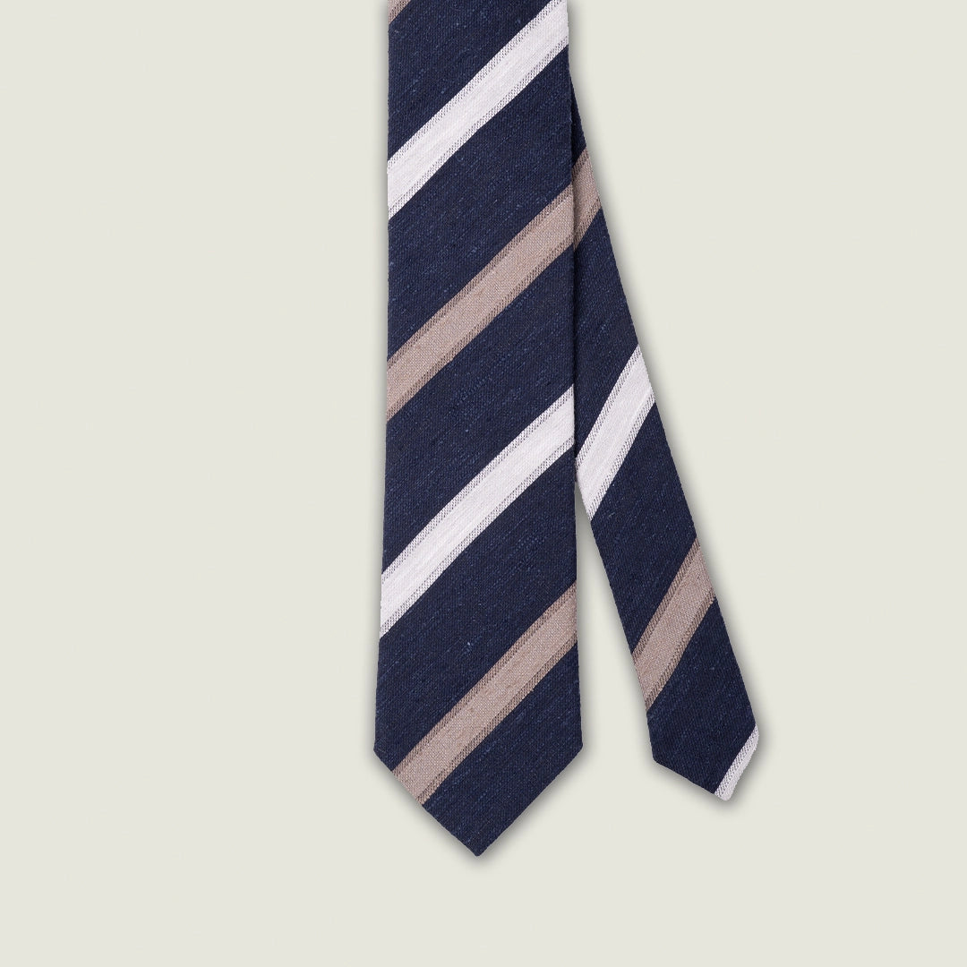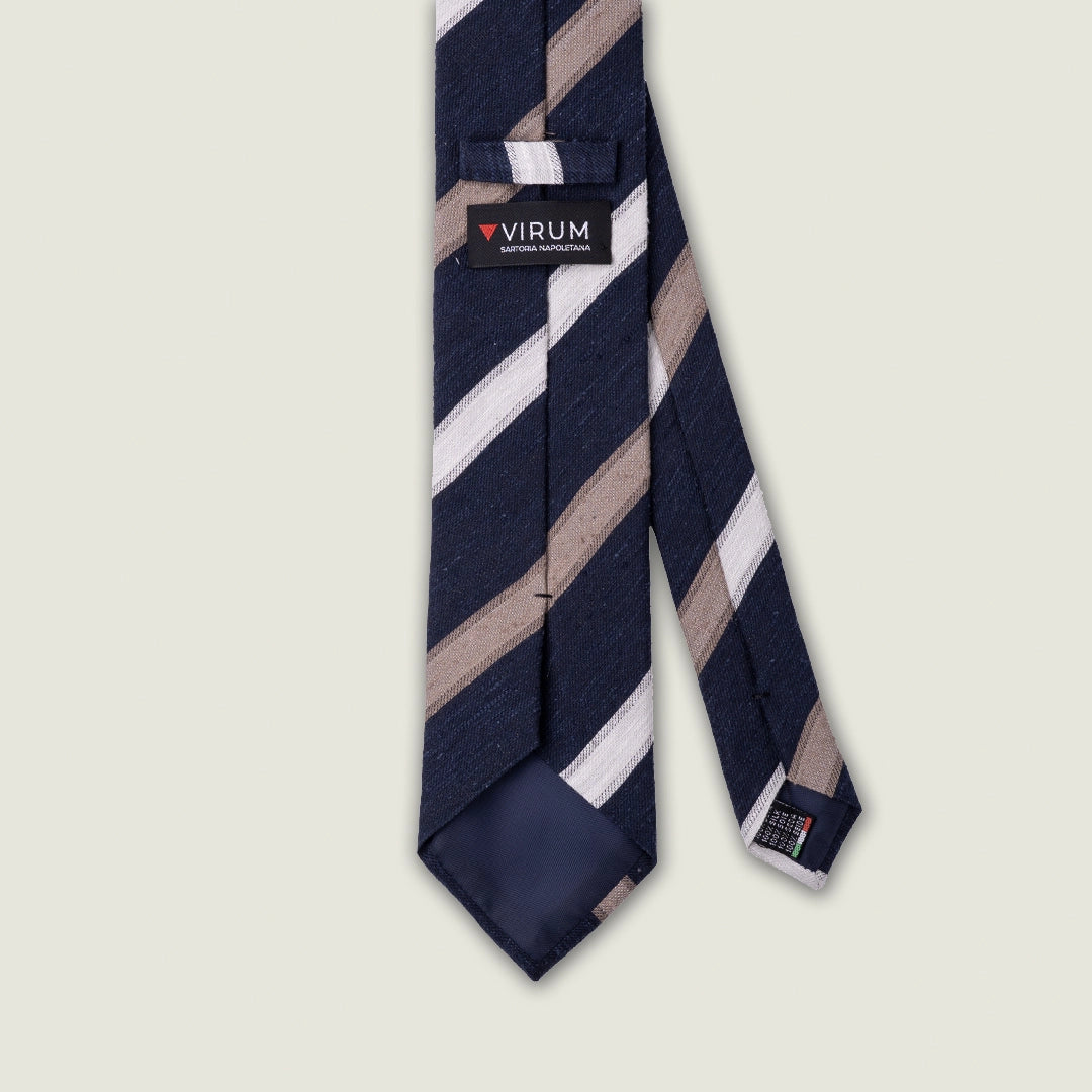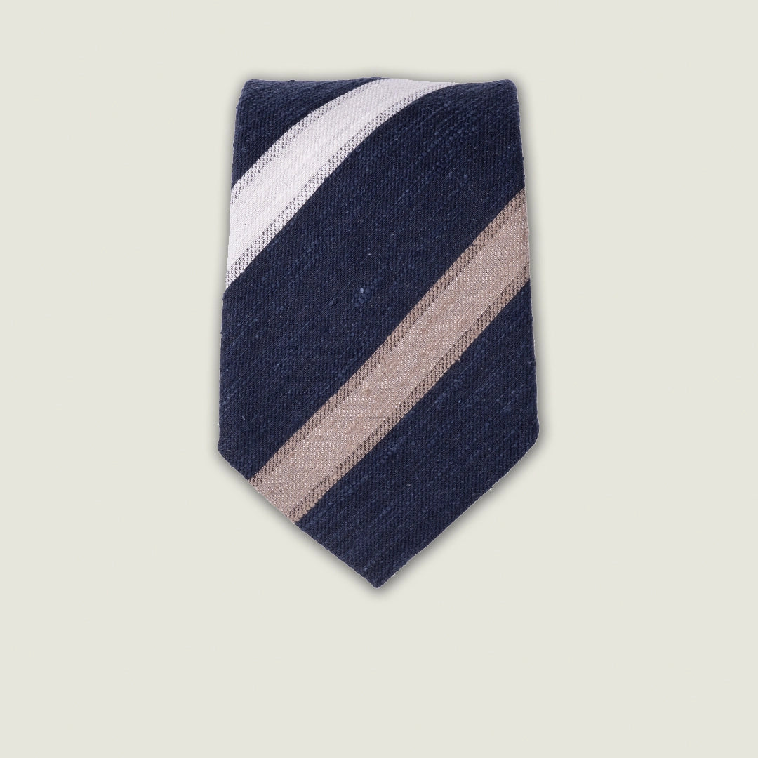 Cravatta 3 Pieghe - 100% Seta Shantung - Blu Navy con Diagonale Beige e Avorio – Made in Italy