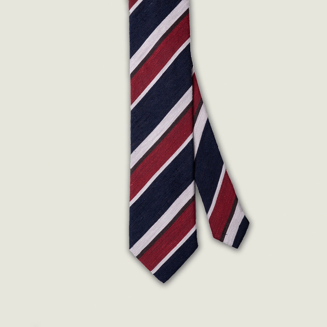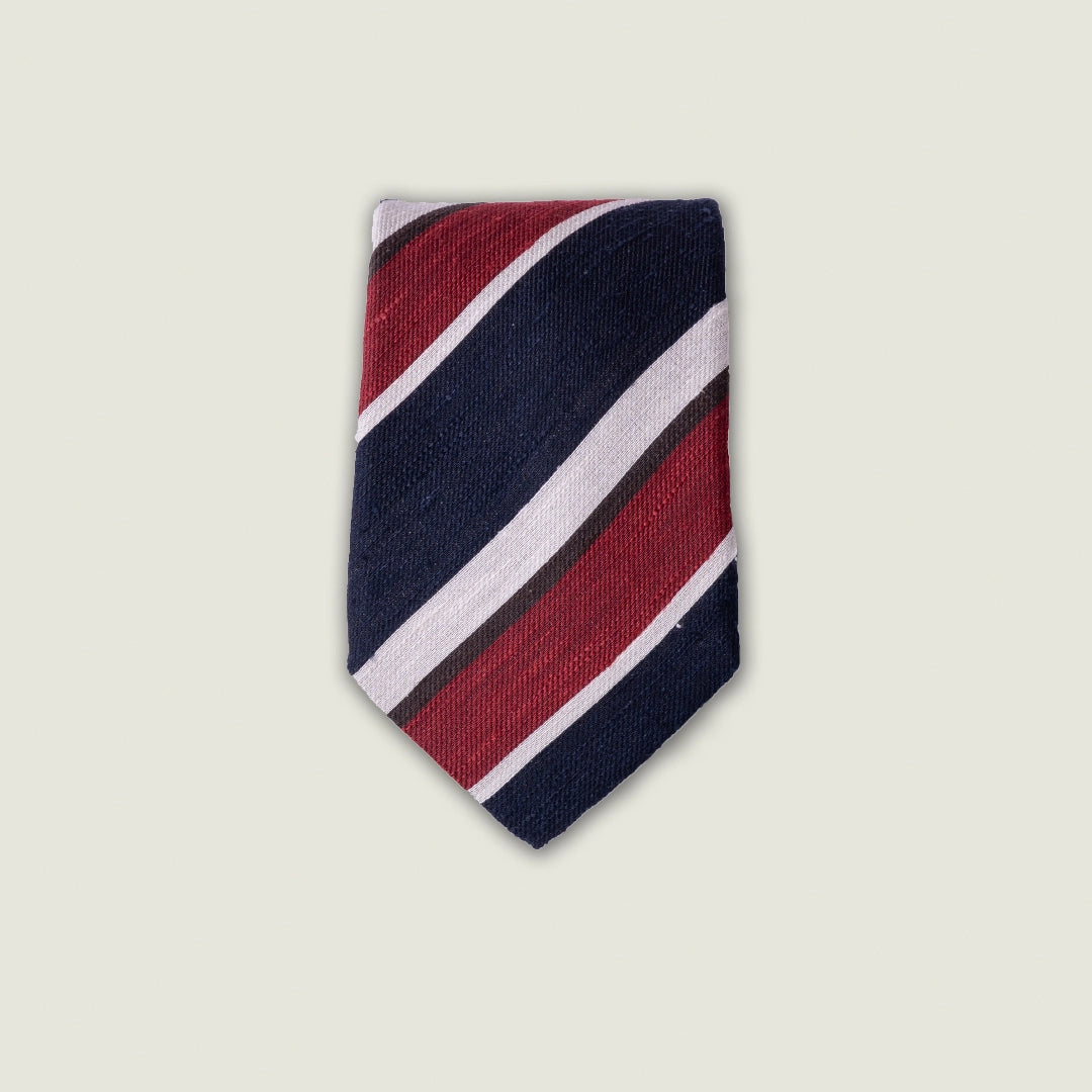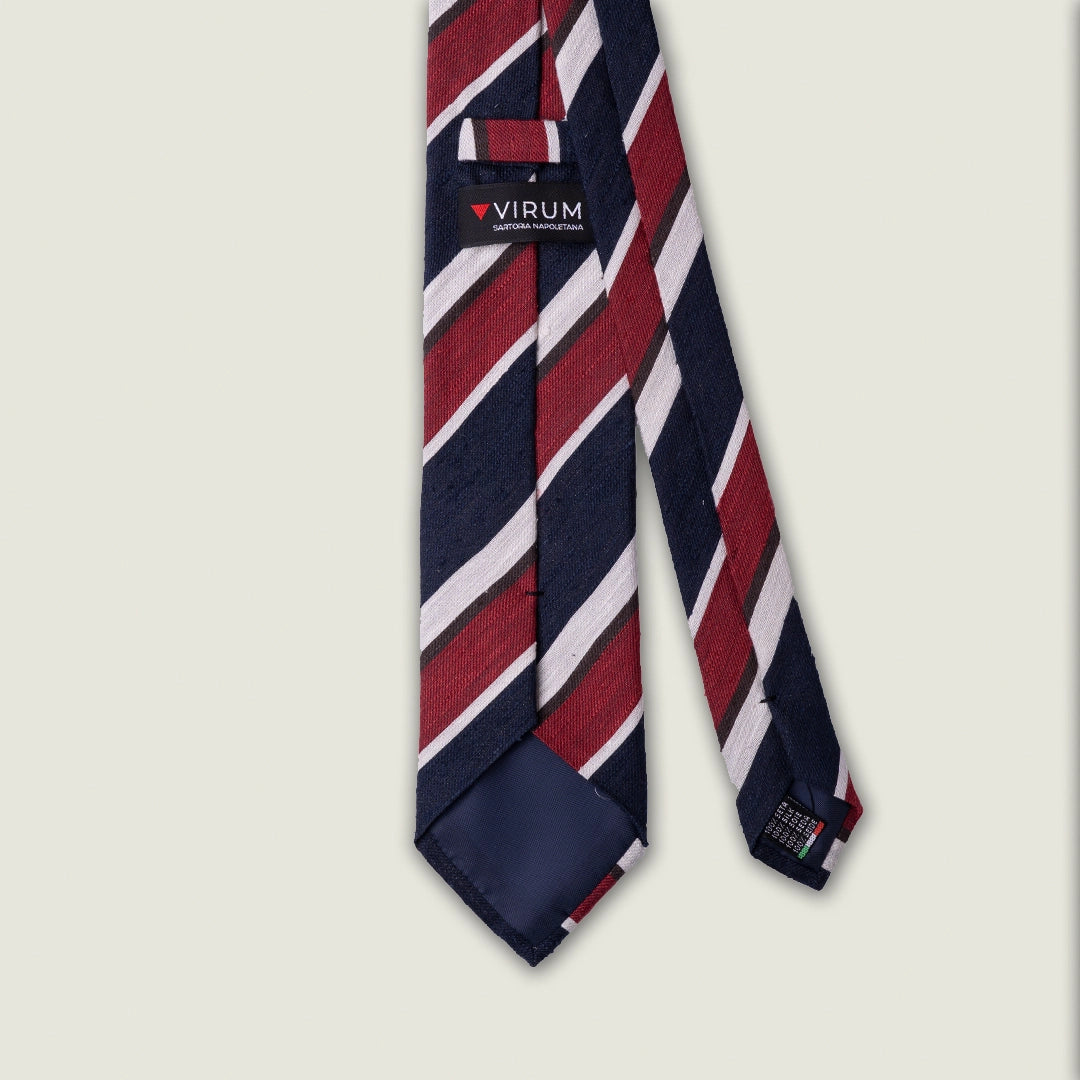 Cravatta 3 Pieghe - 100% Seta Shantung - Regimental Blu Diagonale Rossa e Avorio – Made in Italy