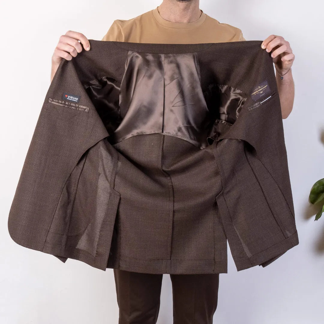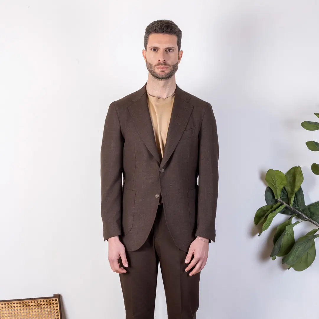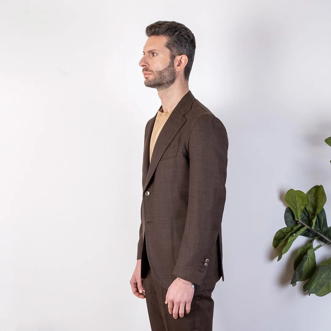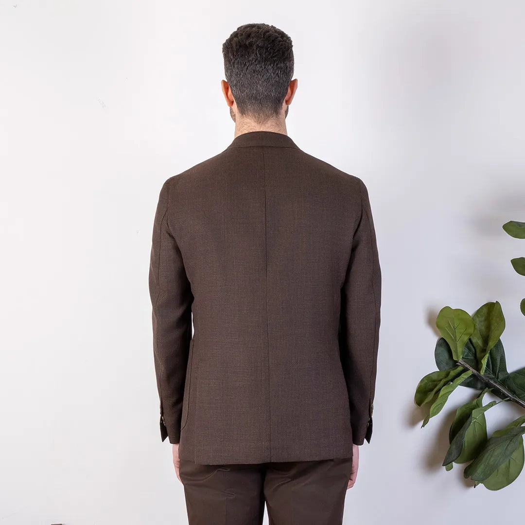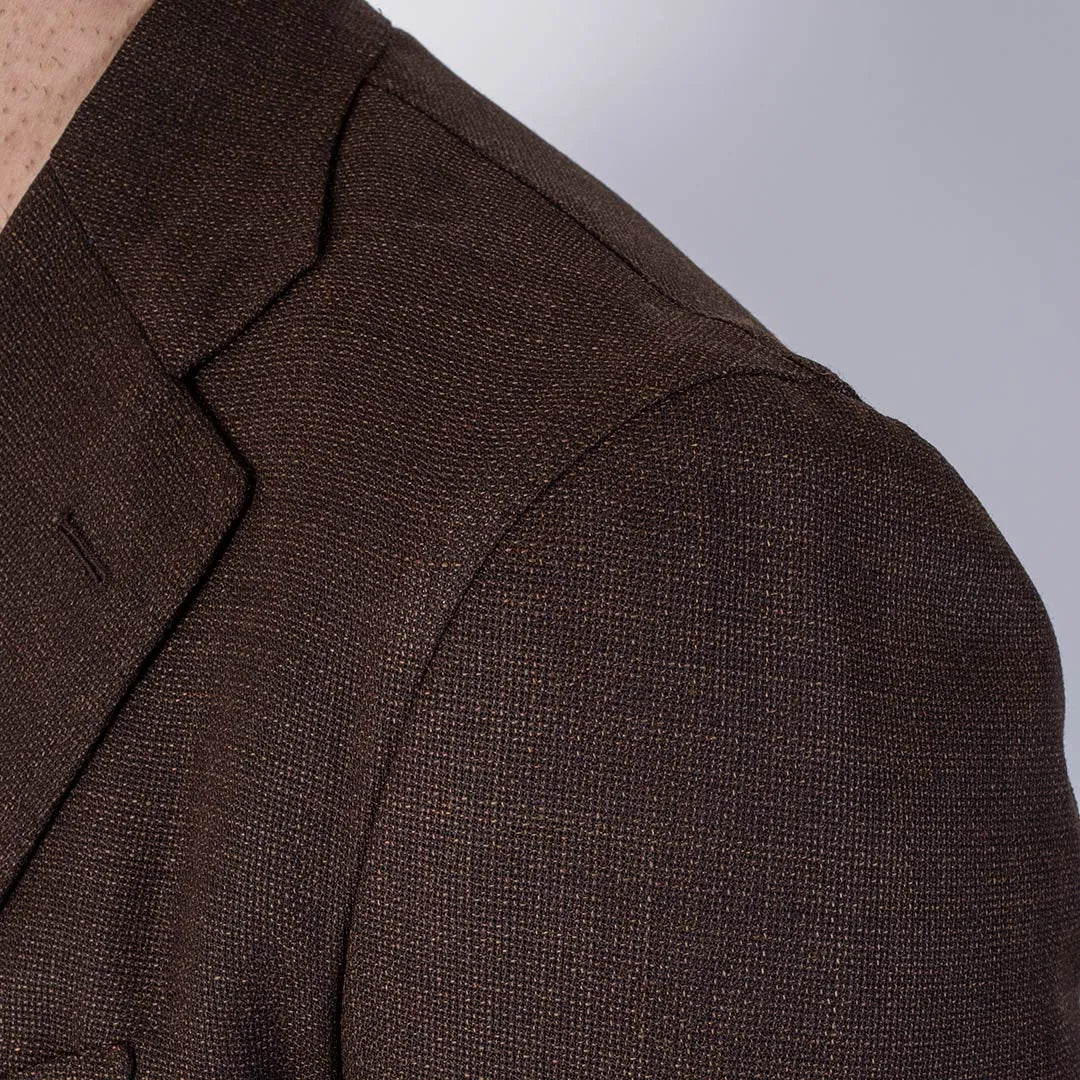 Brown Hopsack Deconstructed Jacket in Pure Vitale Wool Barberis Canonico - Made in Italy