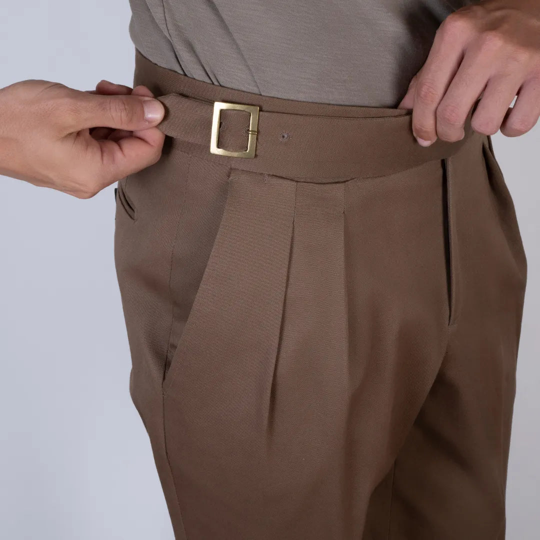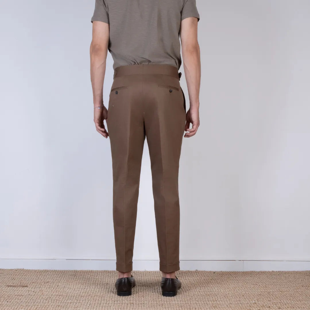 Pantalone Partenopeo Doppia Pinces in Cotone Marrone