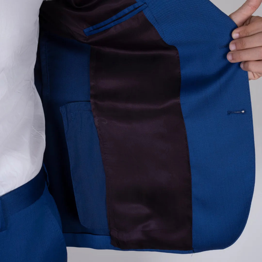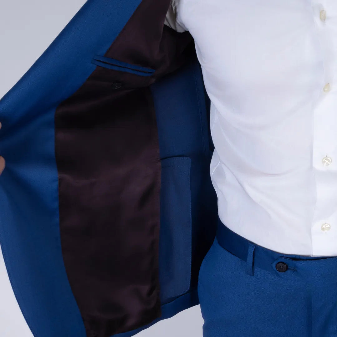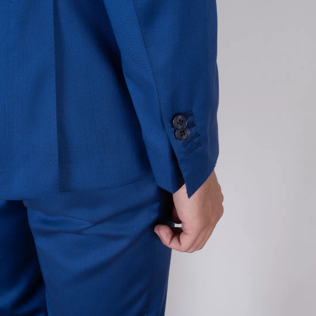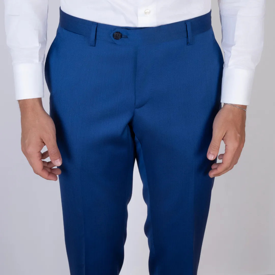 Eleganza decisa e linee pulite per questo abito sartoriale in pura lana color blu vivo. Il taglio classico valorizza la figura, mentre la tonalità intensa lo rende perfetto per chi desidera distinguersi con stile. Ideale per occasioni formali o eventi speciali, è una scelta senza tempo per il guardaroba maschile.
