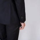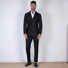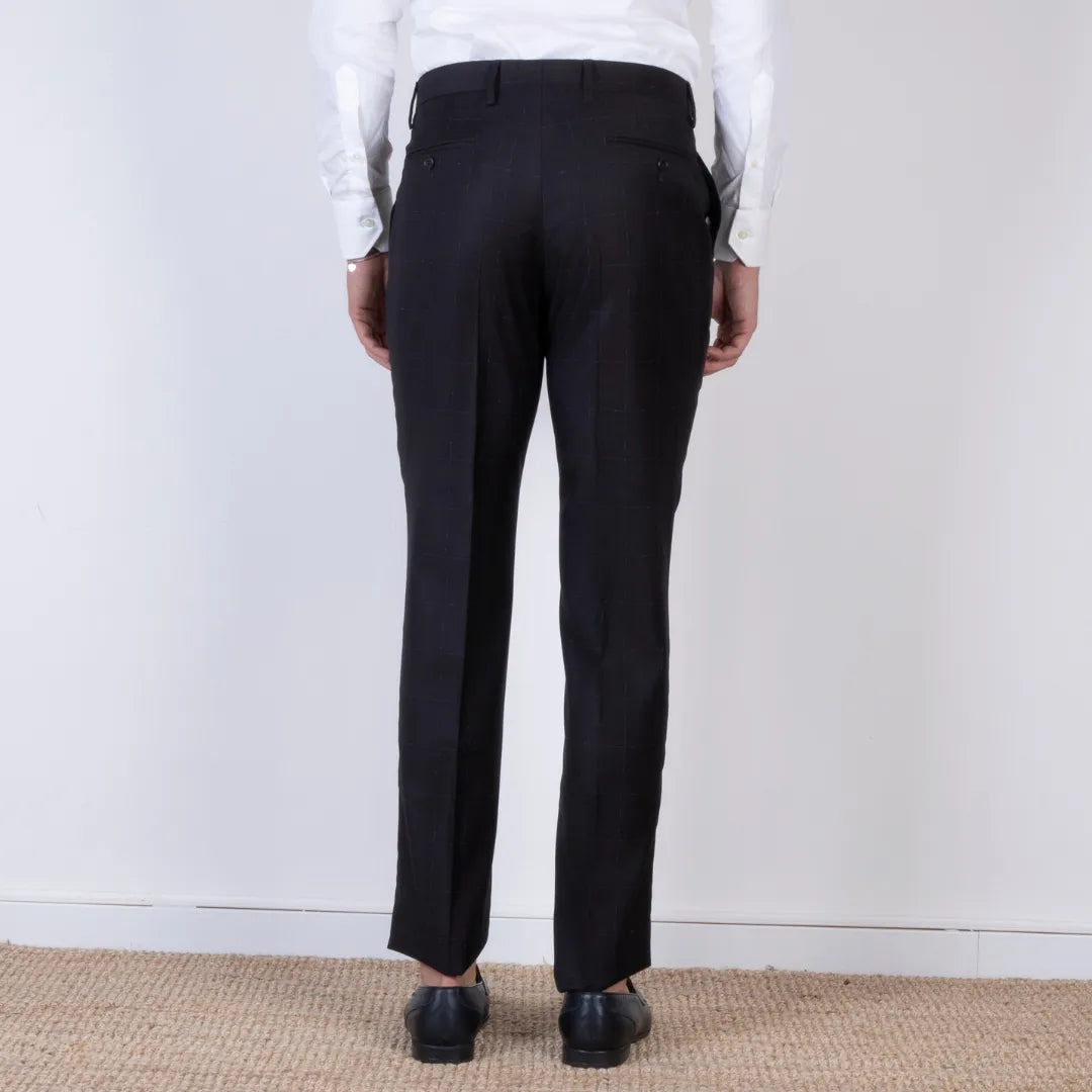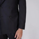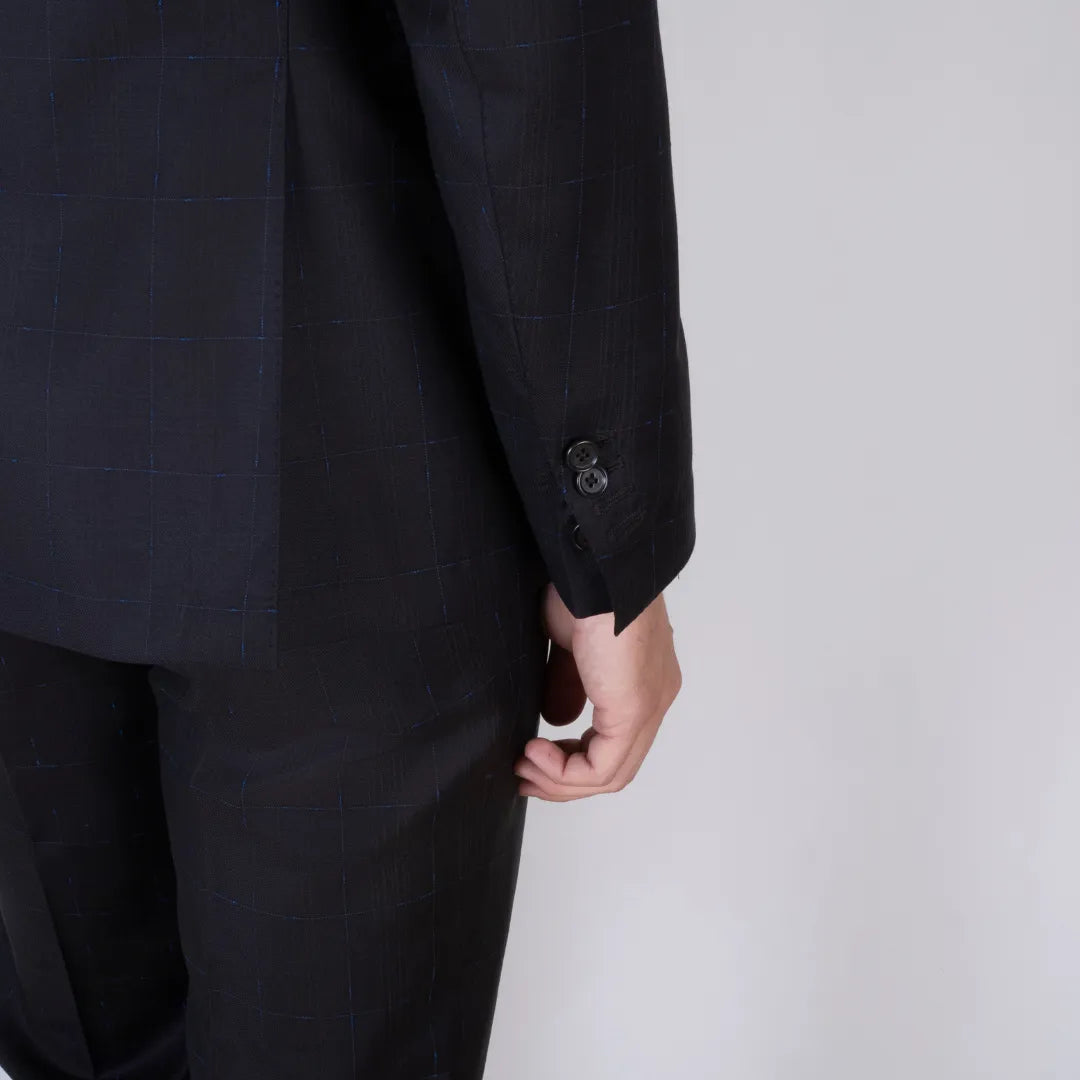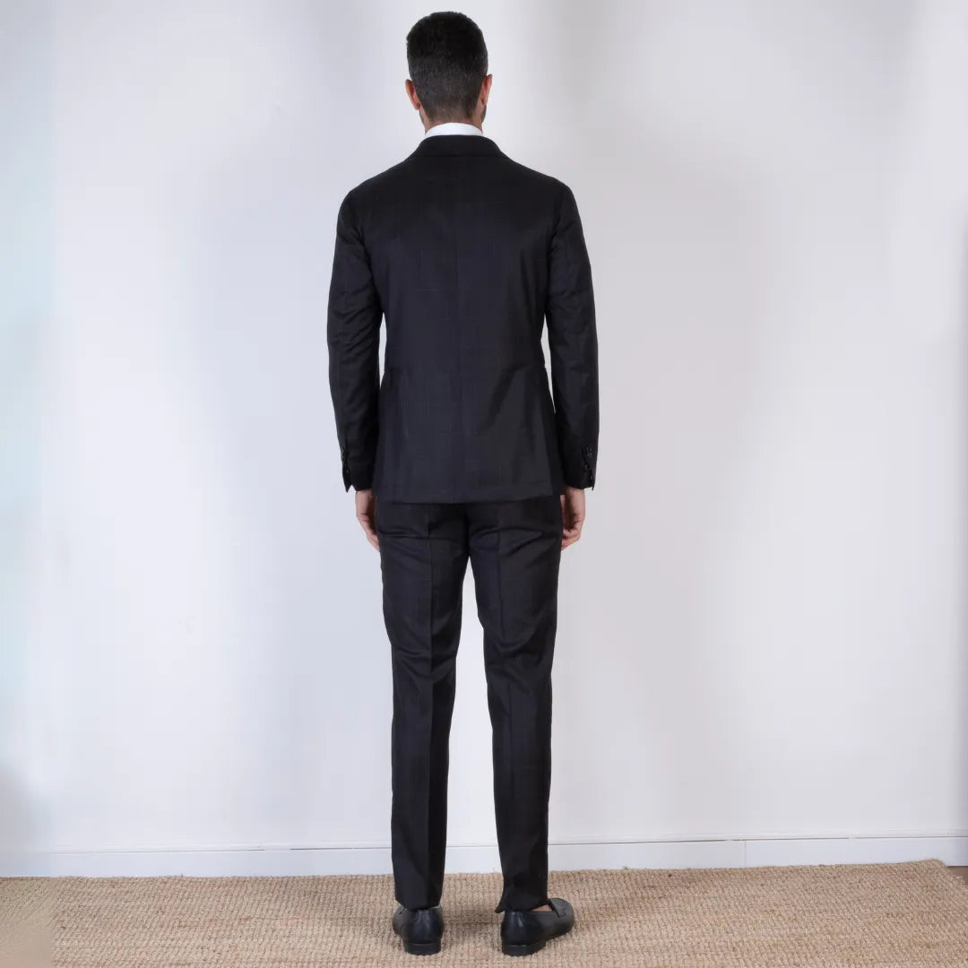Elegante abito doppiopetto in pura lana, caratterizzato da una raffinata fantasia check azzurro su base marrone. Il taglio sartoriale e il tessuto leggero lo rendono perfetto per contesti formali o cerimonie. Proposto nella taglia 46.
