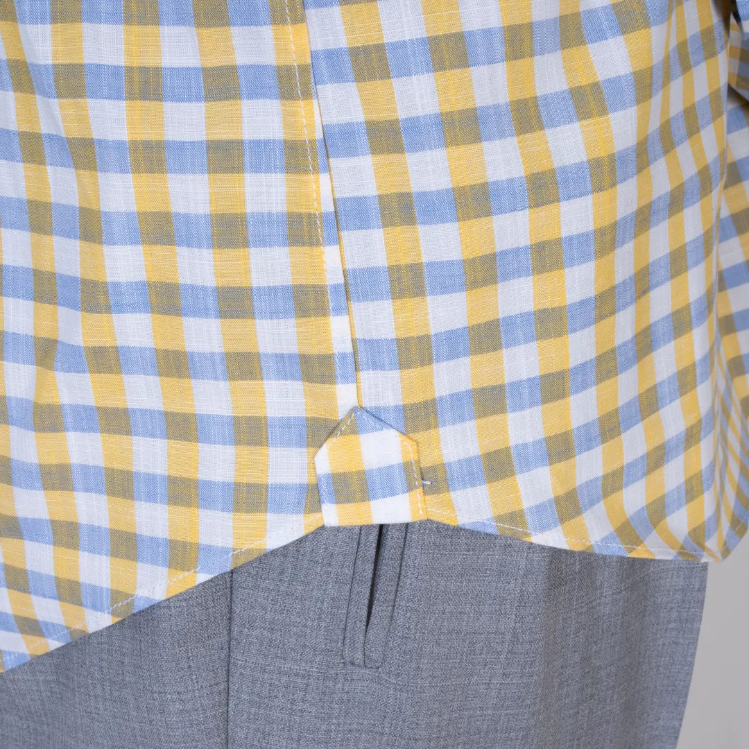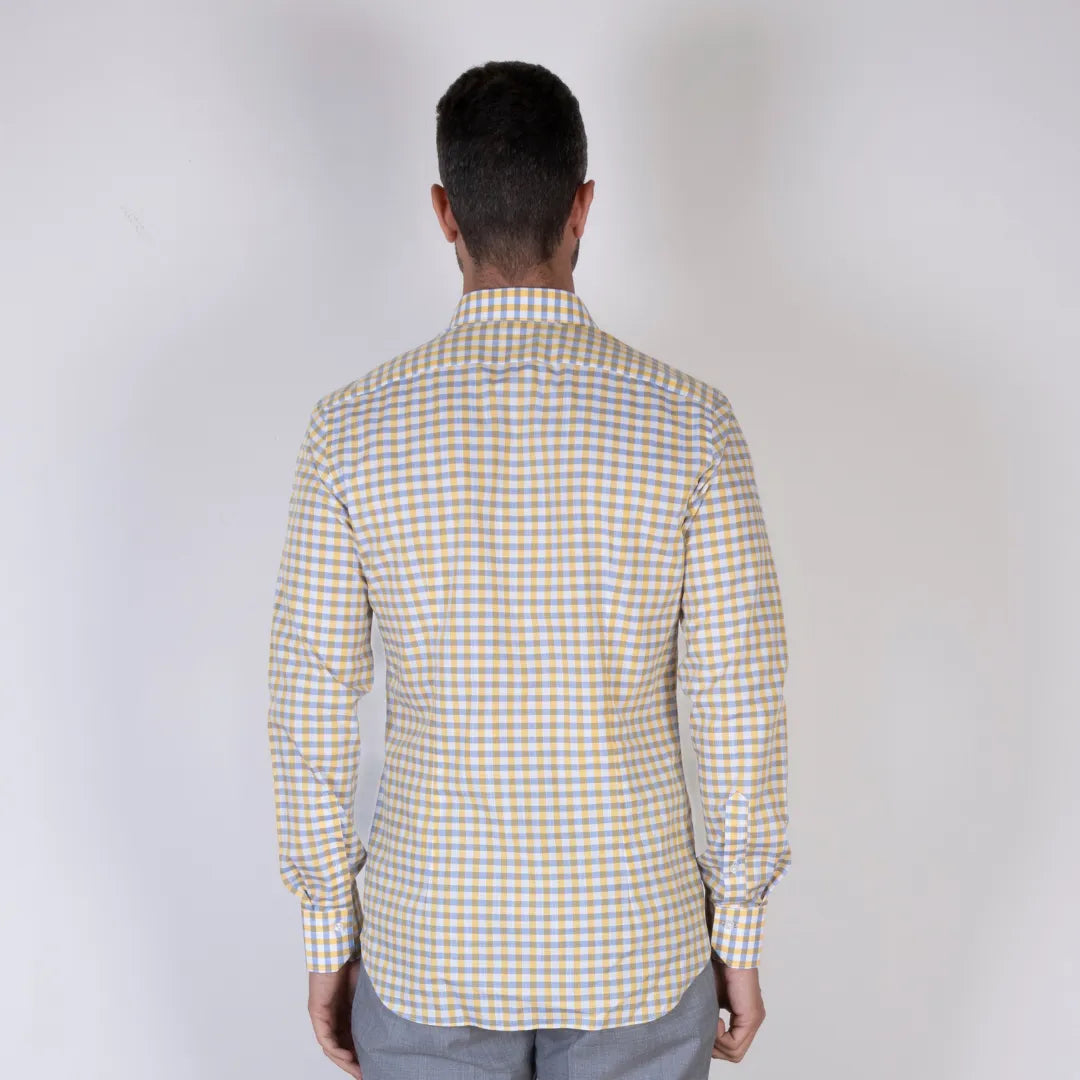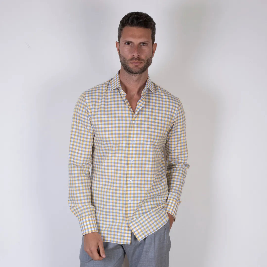 Camicia a Quadretti Giallo e Azzurro in Puro Cotone – Taglia 40