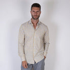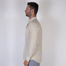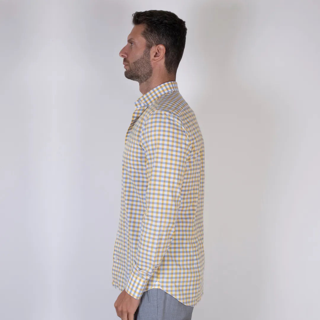 Camicia uomo a maniche lunghe realizzata in puro cotone, caratterizzata da un vivace motivo a quadretti nei toni del giallo e dell’azzurro. Il tessuto leggero e traspirante assicura comfort per tutto il giorno, mentre la vestibilità regolare e i dettagli sartoriali come i polsini con doppio bottone e le cuciture rinforzate ne garantiscono durata e stile. Un capo versatile, perfetto per look casual o smart casual, facile da abbinare a pantaloni in cotone o denim.