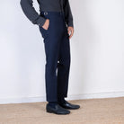 Pantalone sartoriale realizzato in 100% lana, caratterizzato da una trama a quadri discreta e raffinata. Dotato di regolatori laterali in vita, tasche oblique anteriori e tasche a filetto con bottone sul retro. La vestibilità è regolare con fondo risvoltato, per uno stile elegante e contemporaneo. Un capo versatile, adatto a contesti formali e business casual.