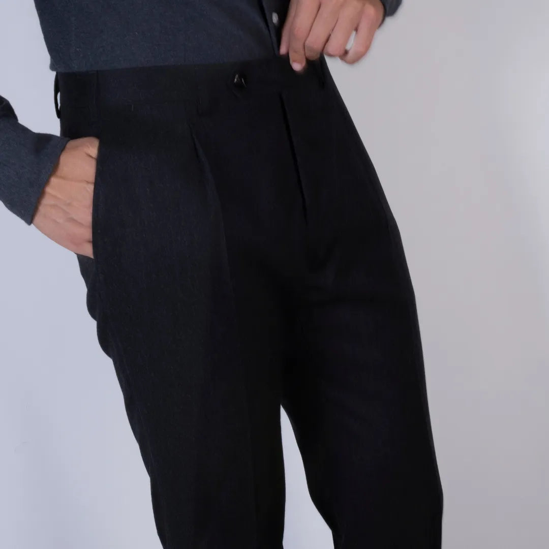 Realizzato in una morbida flanella di lana con il 10% di cashmere, questo pantalone Filicudi unisce comfort e raffinatezza. La presenza della pence frontale e il taglio regolare offrono una vestibilità elegante e versatile, adatta sia a look formali che casual. Il colore scuro ne fa un alleato perfetto per la stagione fredda, abbinabile facilmente a camicie, maglie e blazer in tonalità neutre o accese.